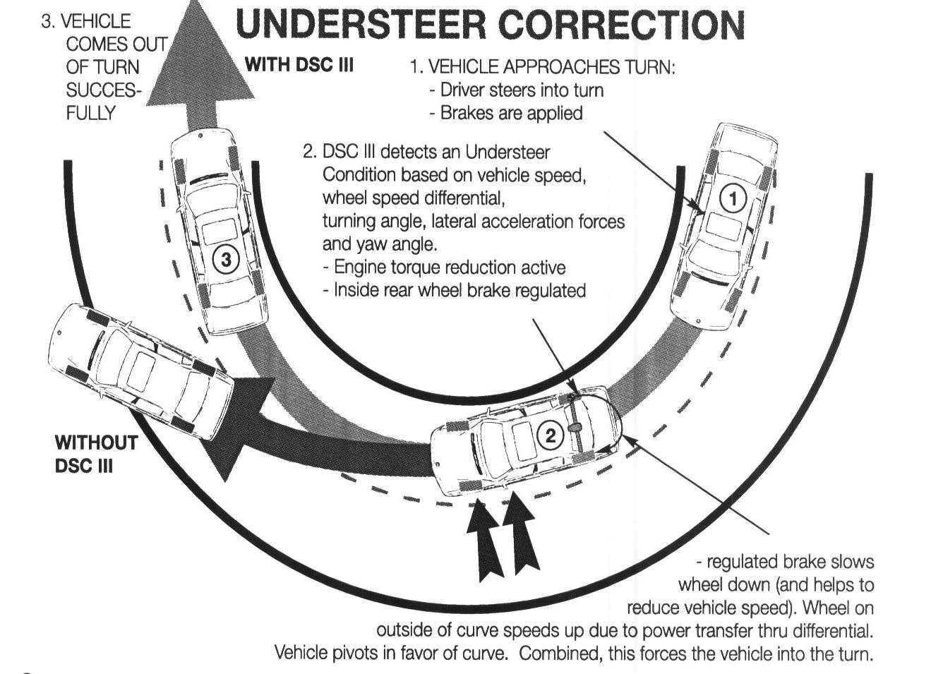 Though DSC III provides state of the art, electronic correction of undesirable vehicle handling characteristics, it is important to remember vehicle stability is always subject to the physical laws of centrifugal force and extreme road conditions. Good judgment and common sense on the part of the driver are still required.