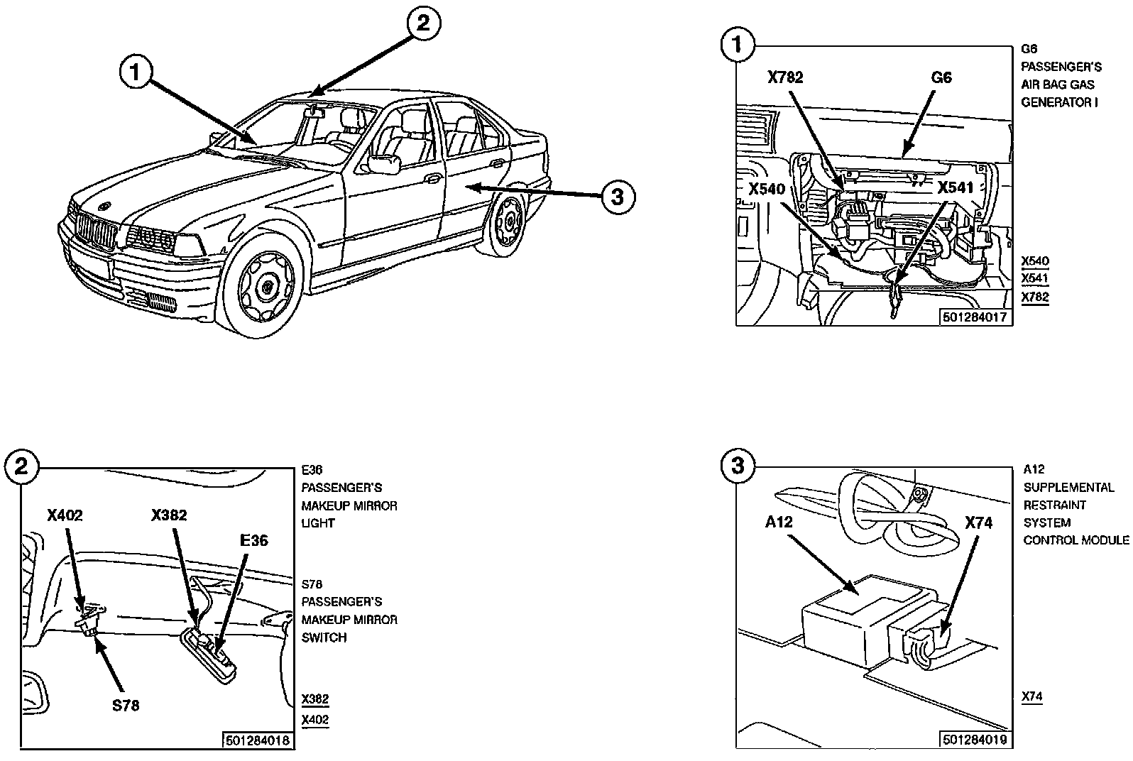 Component ID : A12, Supplemental restraint system control module