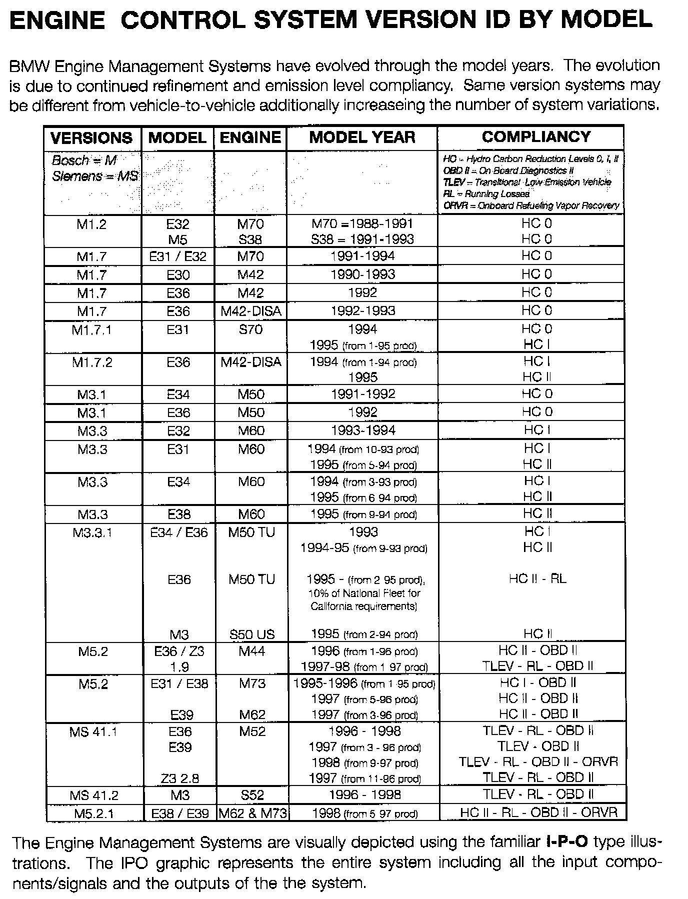 Engine Control System Version ID by Model: