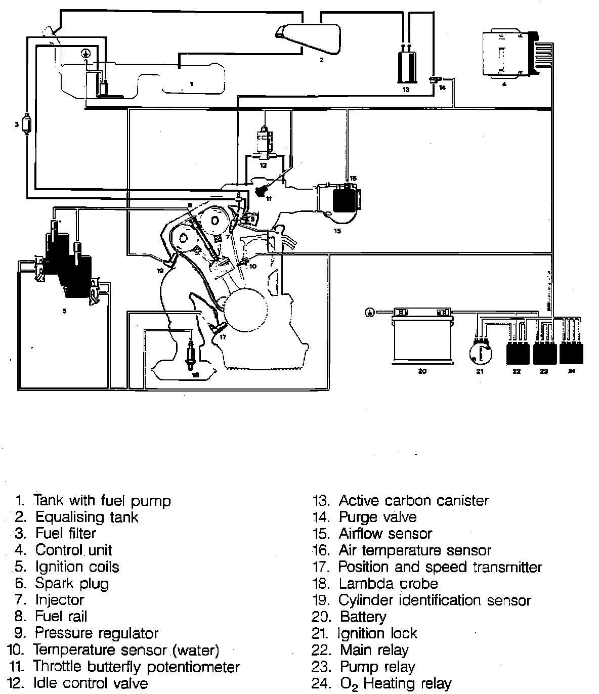 Instrument cluster Engine speed signal, injection signal (for fuel consumption indicator), fault lamp (US only)