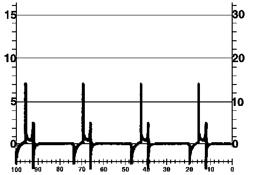 Evaluation of ignition voltage peaks at idle speed (this example shows an engine with 4 cylinders).