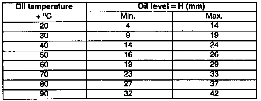 This level is greatly dependent on the transmission oil temperature and is indicated corresponding to the table above.