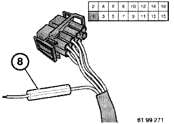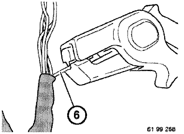 - Mark damaged contact (4) with socket number of housing and press it out at housing using relevant special tool contained in special tool kit 61 1 150.