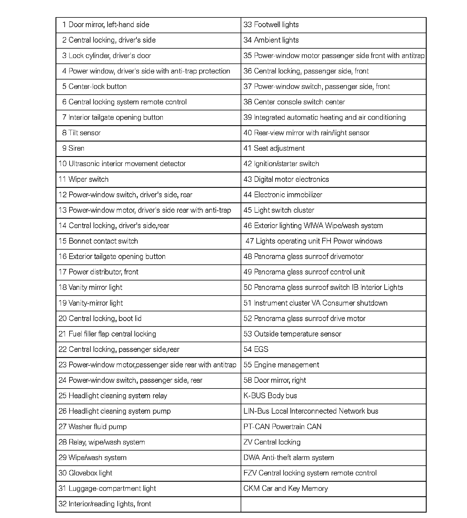 The functions of the general vehicle electrical system are comparable to those of the general vehicle electrical system on the E46 (3 series):