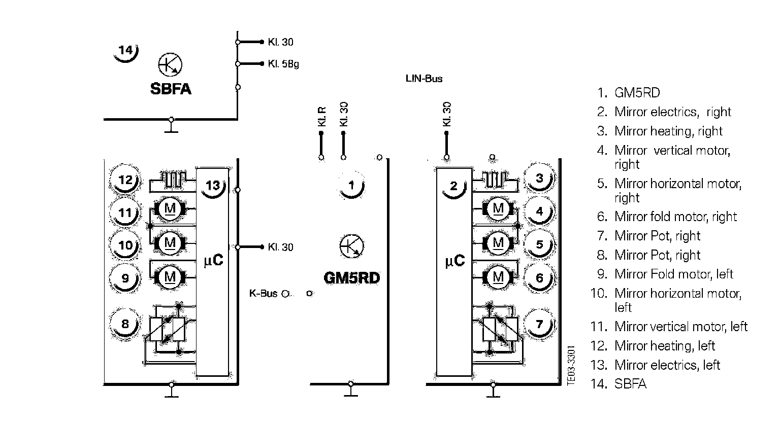 The mirror switch in the SOFA communicates with the GM5RD via the LIN bus.