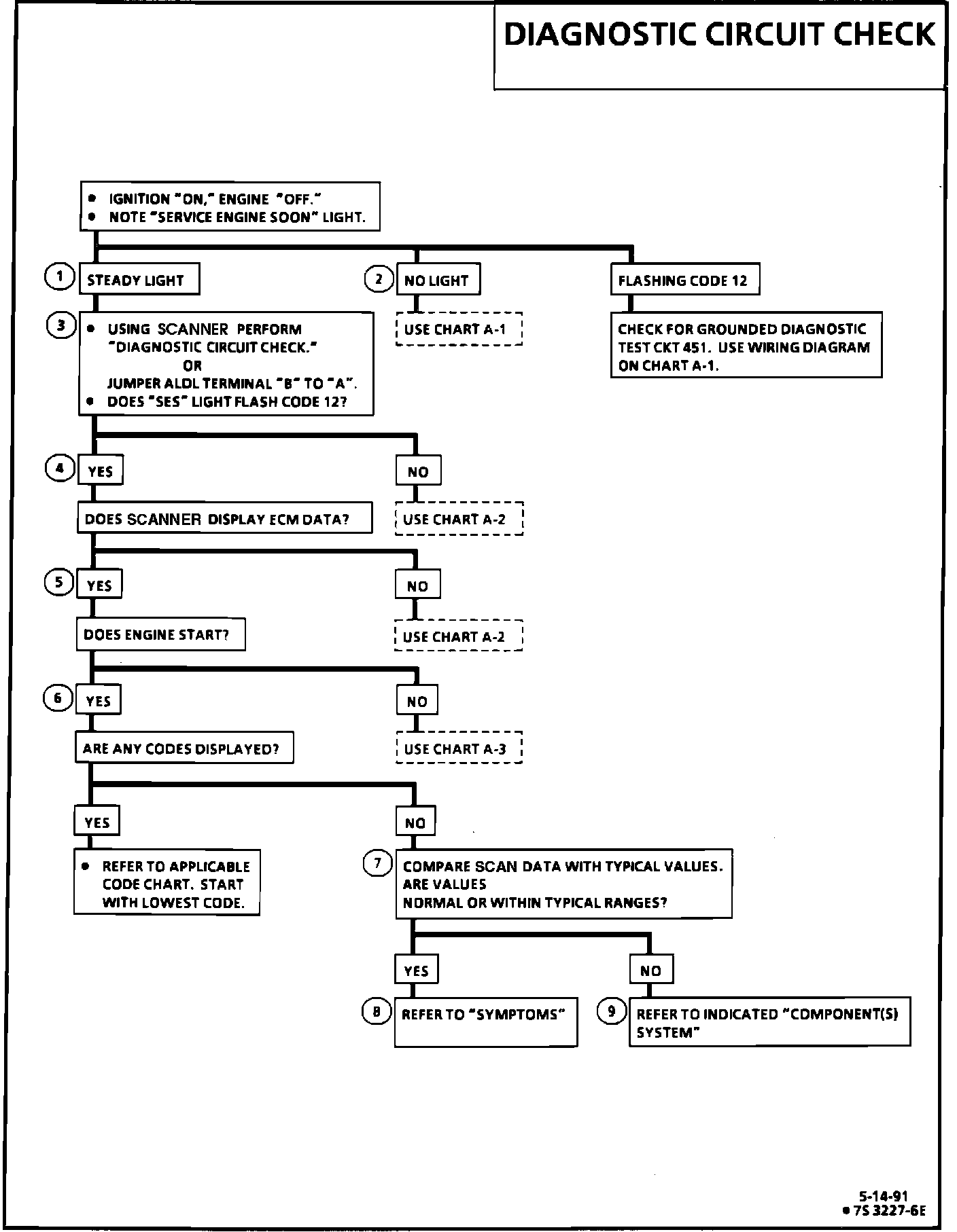 The diagnostic circuit check is an organized approach to identifying a problem created by an electronic engine control system malfunction. It must be the starting point for any driveability complaint diagnosis, because it directs the service technician to the next logical step in diagnosing the complaint. Understanding the chart and using it correctly will reduce diagnostic time and prevent the unnecessary replacement of good parts