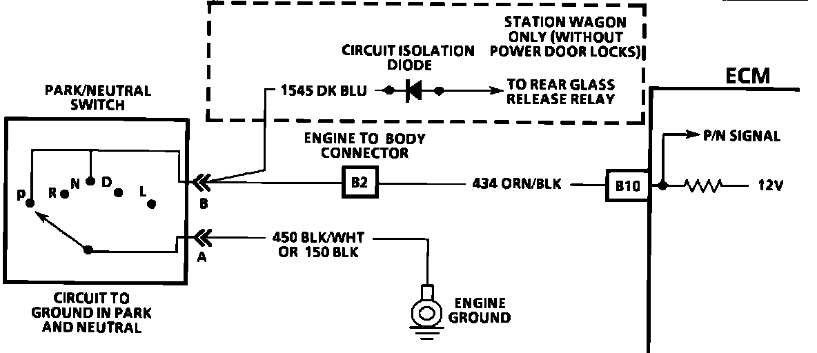 If circuit 434 indicates P/N switch (grounded) while in the drive range, the EGR would be inoperative and engine detonation may result. If circuit 434 always indicates (open), a drop in idle speed may exist when the gear selector is moved into the drive range.