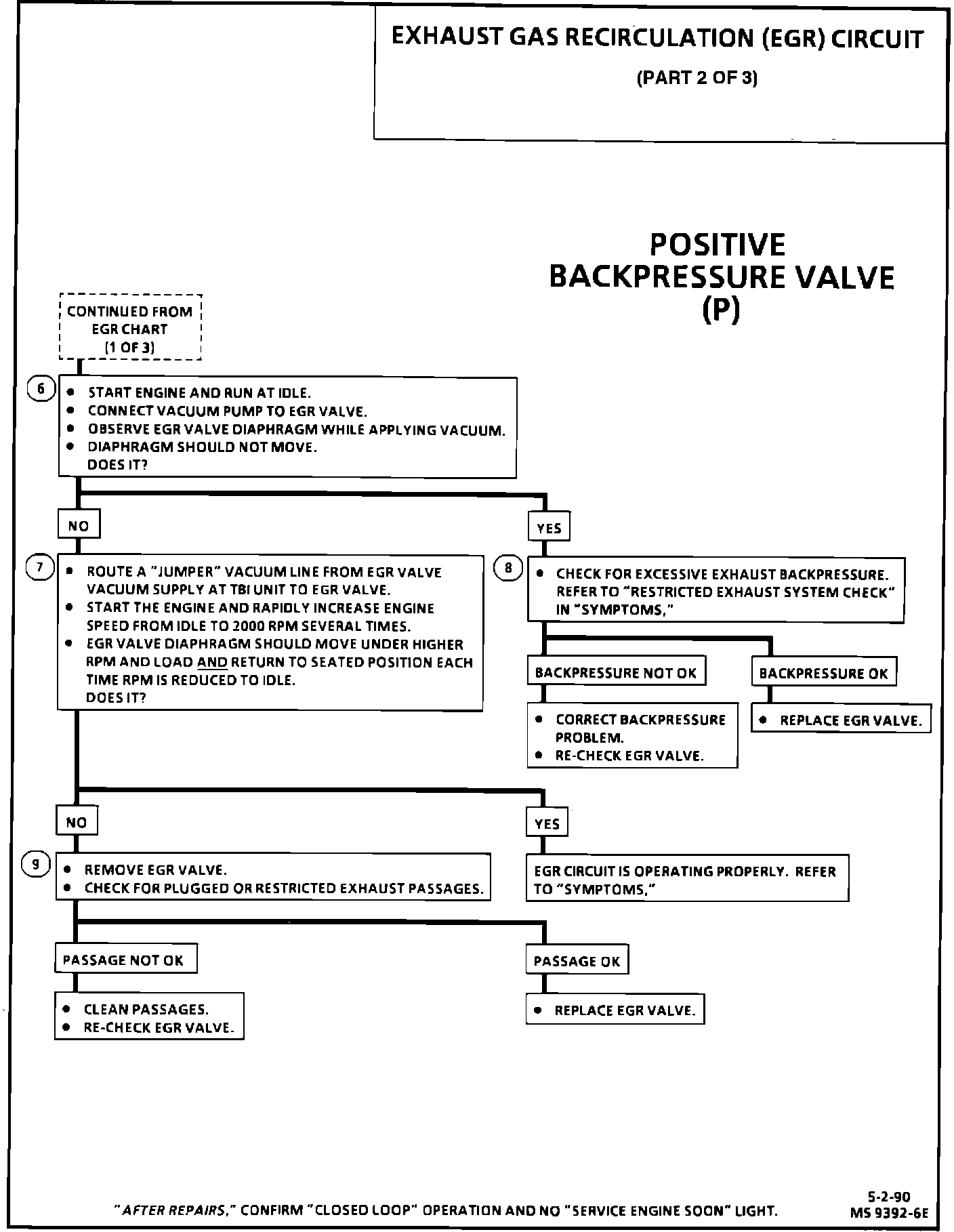 6. The remaining tests check the ability of the EGR to interact with the exhaust system. This system uses a POSITIVE BACKPRESSURE EGR VALVE which will not hold vacuum until sufficient exhaust backpressure is at the base of the valve.