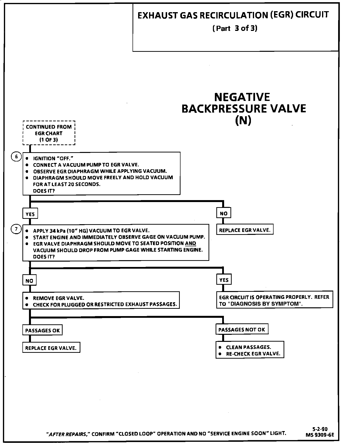 6. The remaining tests check the ability of the EGR to interact with the exhaust system. This system uses a NEGATIVE BACKPRESSURE EGR VALVE which should hold vacuum with the engine off.