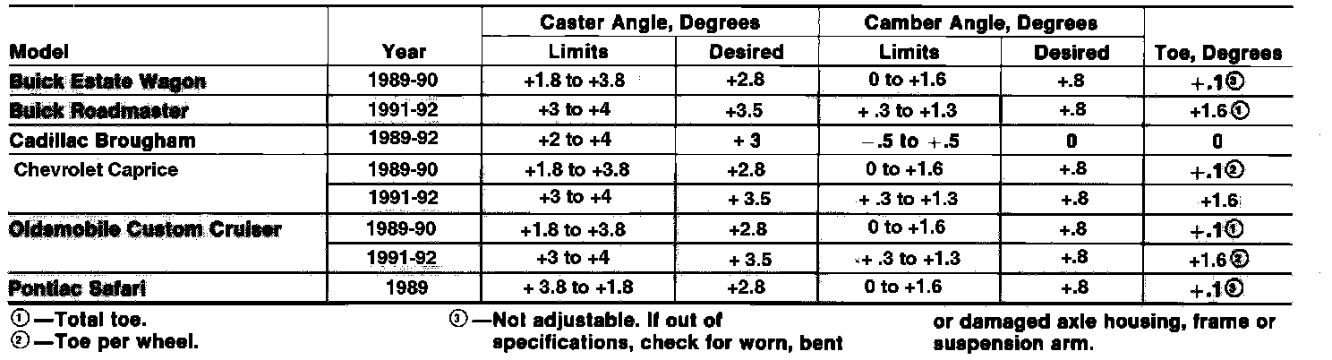 Front Wheel Alignment Specifications: