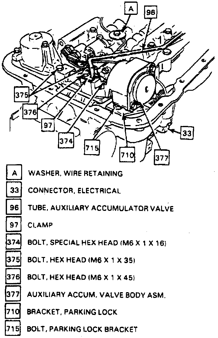 4. Remove two bolts that attach auxiliary accumulator valve tube to control valve assembly and accumulator valve body assembly.