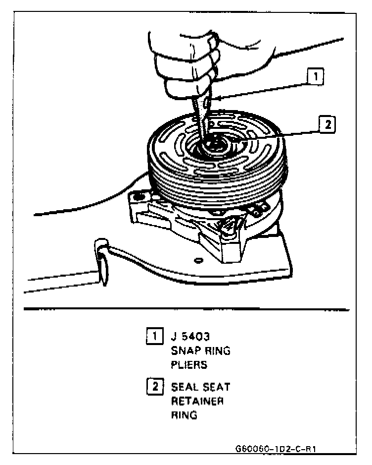 4. Remove the shaft seal retainer ring, using snap ring pliers J 5403.
