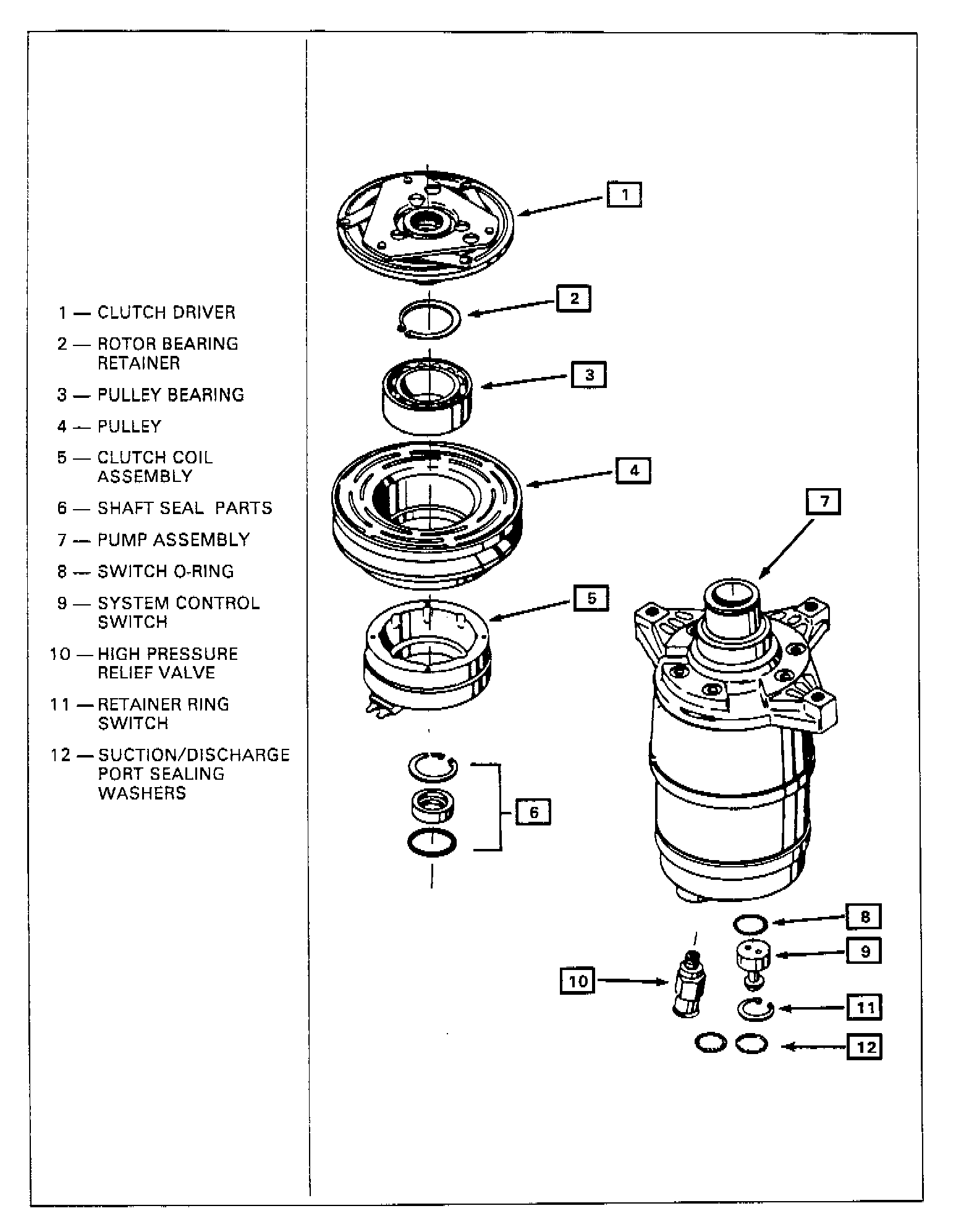 The Compressor Shaft Seal assembly, control switches, and Pressure Relief Valve may also be serviced WITHOUT REMOVING THE compressor from the vehicle but these operations are covered later in this section as MAJOR REPAIR PROCEDURES because the system must be reclaimed, evacuated and recharged to complete service.