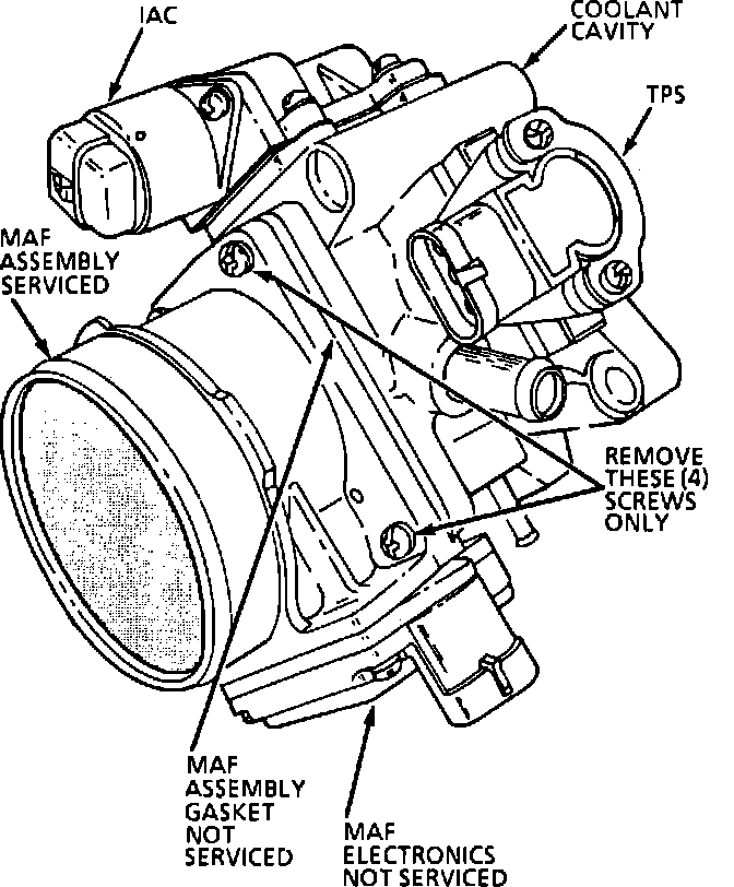 The Mass Air Flow (MAF) sensor measures the flow of air which passes through it in a given time. It does this by measuring the electrical power required to maintain the sensing element at a specific number of degrees Celsius above the incoming air temperature. As the air enters the sample tube it passes over and cools the sensing element, which then requires additional current to maintain the prescribed uniform temperature. The PCM uses this information to monitor the operating condition of the engine for fuel delivery calculations.