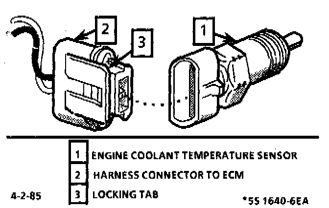 The Engine Coolant Temperature (ECT) Sensor is a thermistor that is located in the engine coolant flow. When the coolant temperature is low, the sensor produces a high resistance. When the coolant temperature is high, the sensor produces a low resistance. Each resistance value correlates to a specific engine coolant temperature. The PCM measures the resistance and calculates the engine temperature.