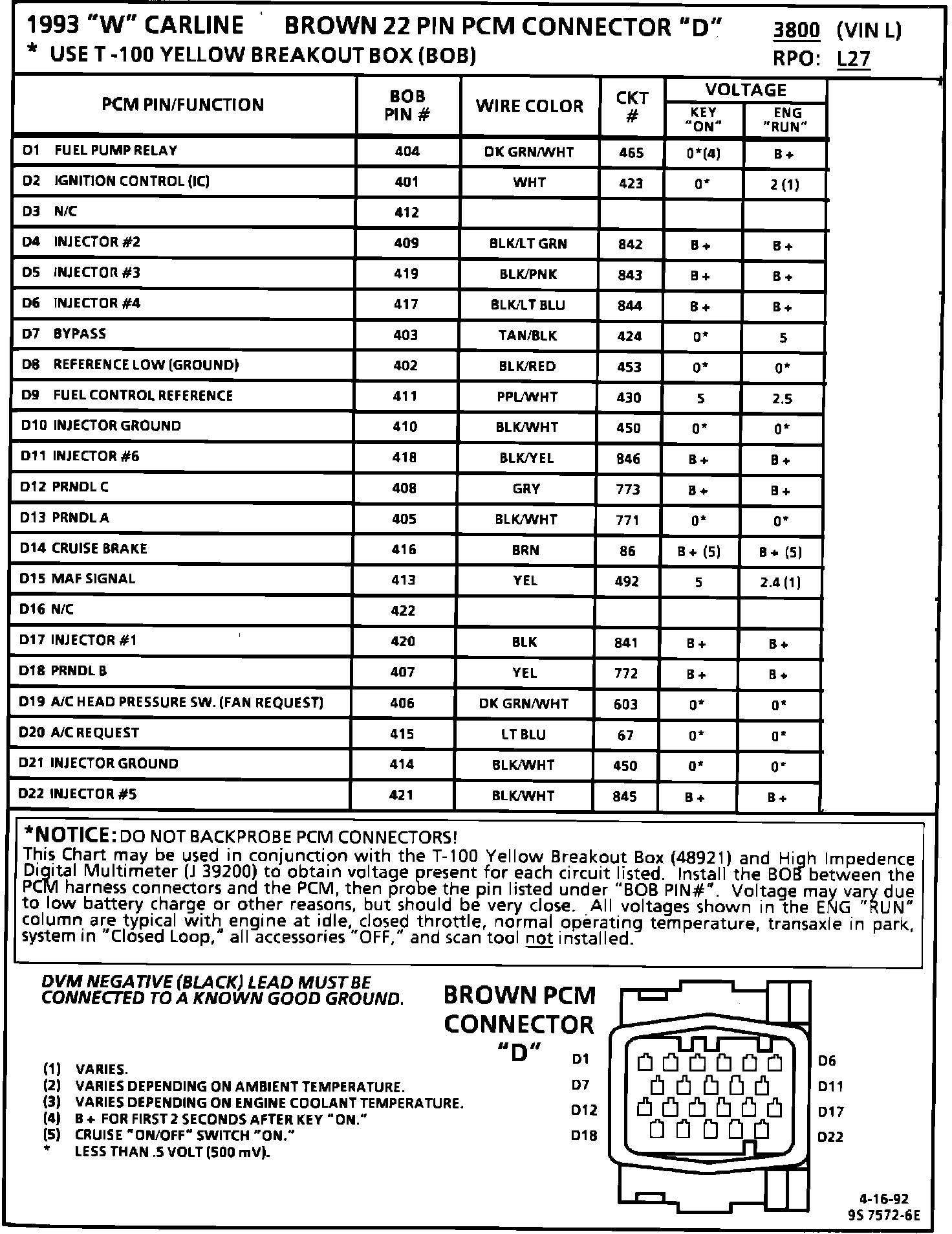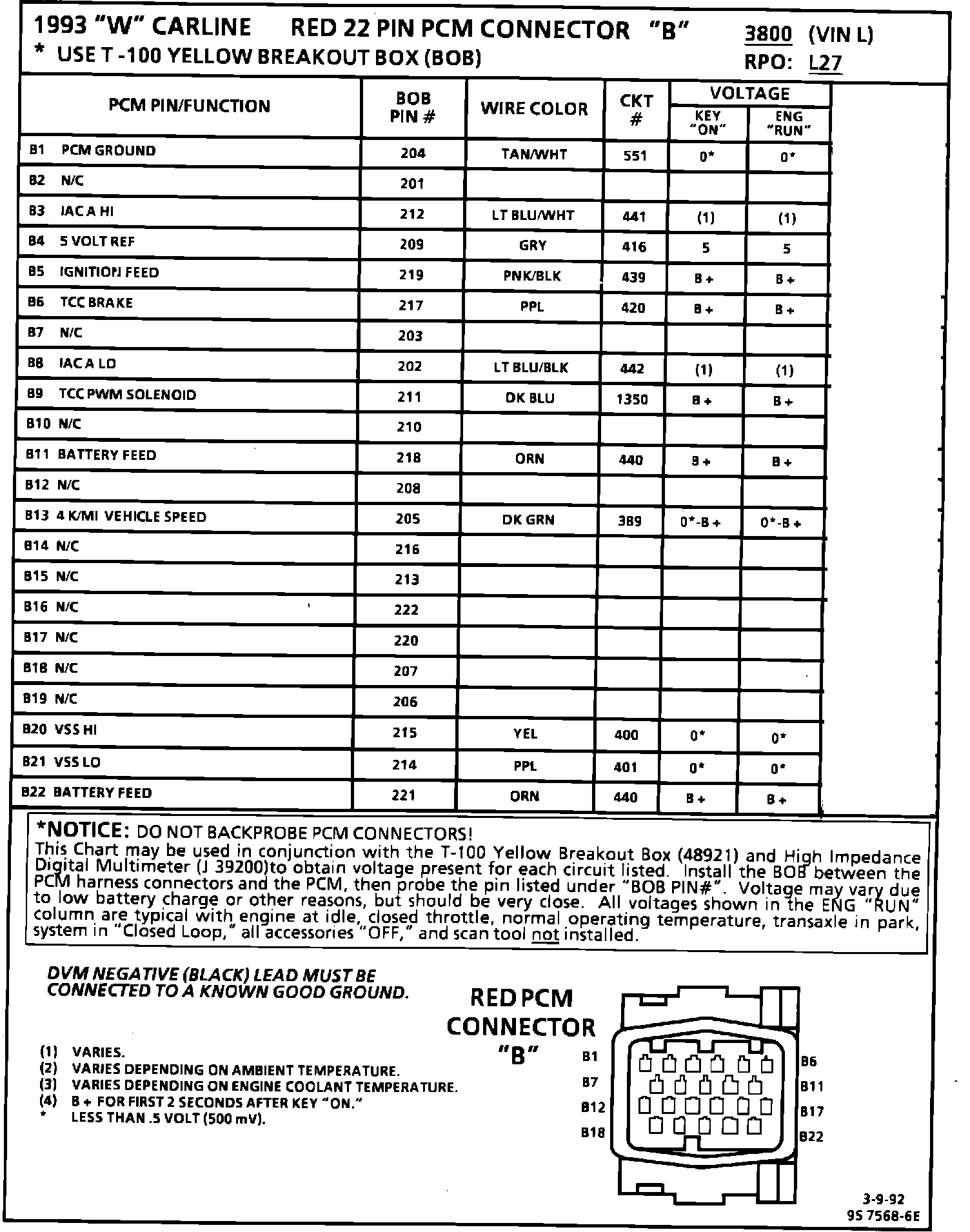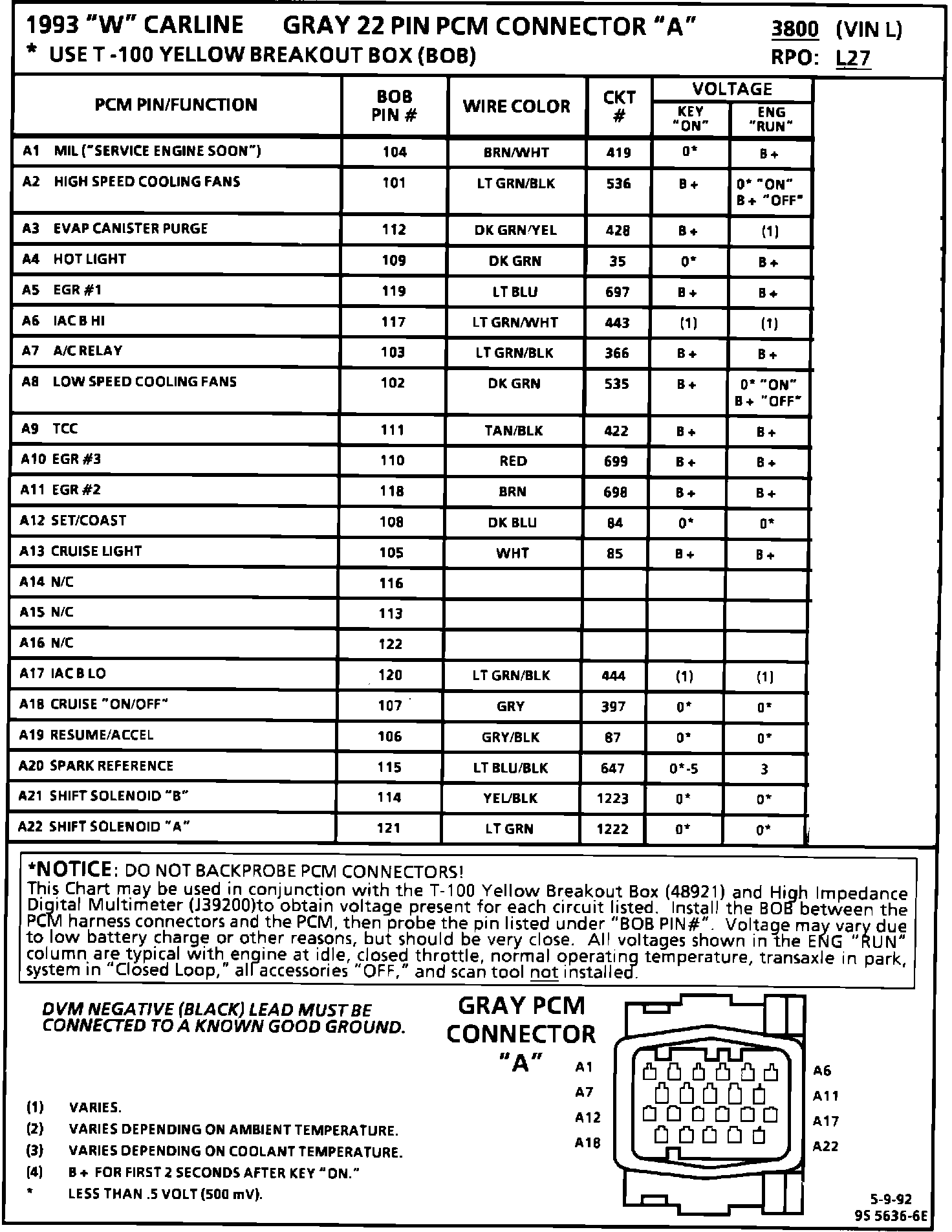 Control Module Connector ID And Pin/Voltage Reference Chart (3 Of 4):