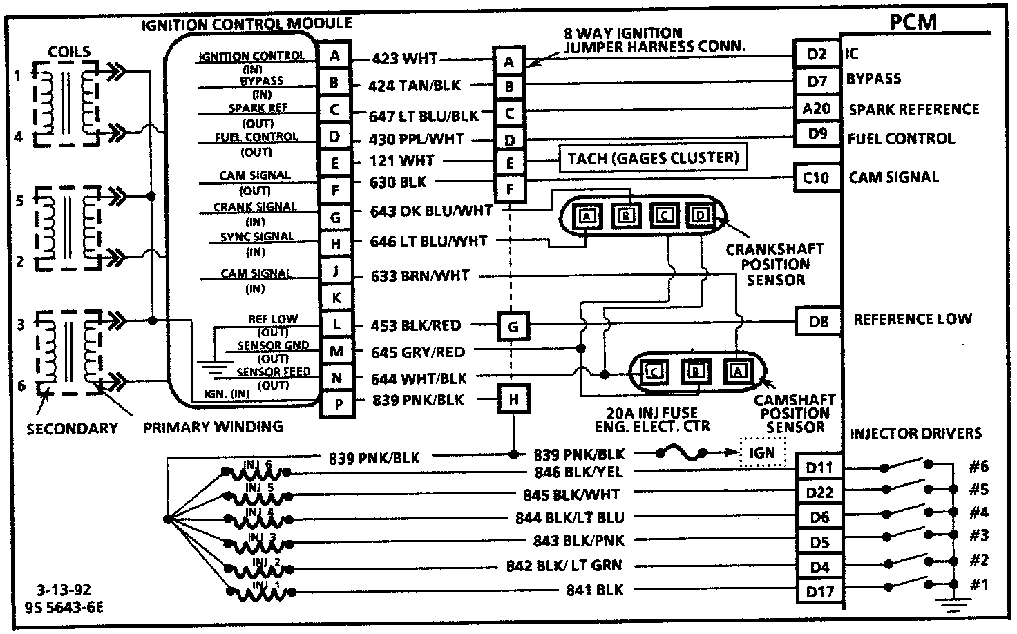 Spark Reference (CKT 647) - The spark reference signal is used to accurately control spark timing at low rpm and allow IC operation during crank. Below 1200 rpm, the PCM is monitoring CKT 647 and using it as the reference for ignition timing advance. When engine speed exceeds 1200 rpm, the PCM begins using CKT 430, fuel control reference to control spark timing.
