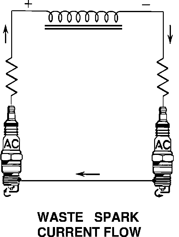 Three separate coils are mounted to the module assembly. Each coil provides the spark for two plugs simultaneously. Each coil can also be replaced separately. A "Waste Spark" method of distribution is used on this system. Each cylinder is paired with its opposing cylinder in firing order so that one cylinder on the compression stroke fires simultaneously with its opposing cylinder on the exhaust stroke. Requiring less voltage to fire the plug on the exhaust stroke, most of the available voltage is sent to the compression stroke cylinder. This process is reversed as the cylinders' roles are reversed.