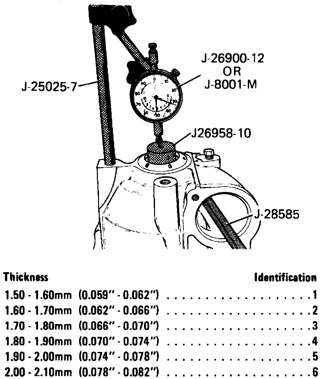 c. If endplay is not 0.005-0.025 inch, refer to chart and replace selective washer to obtain specified clearance.