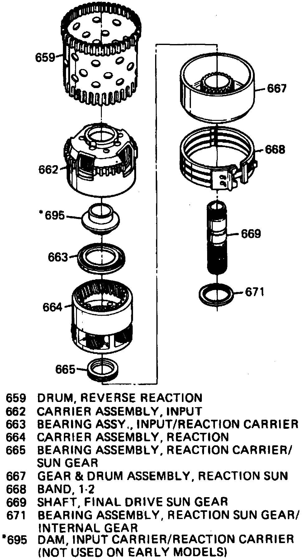 36. Position inside race of thrust bearing against reaction carrier and retain with petrolatum, then install reaction carrier by rotating it until pinions engage with sun gear.