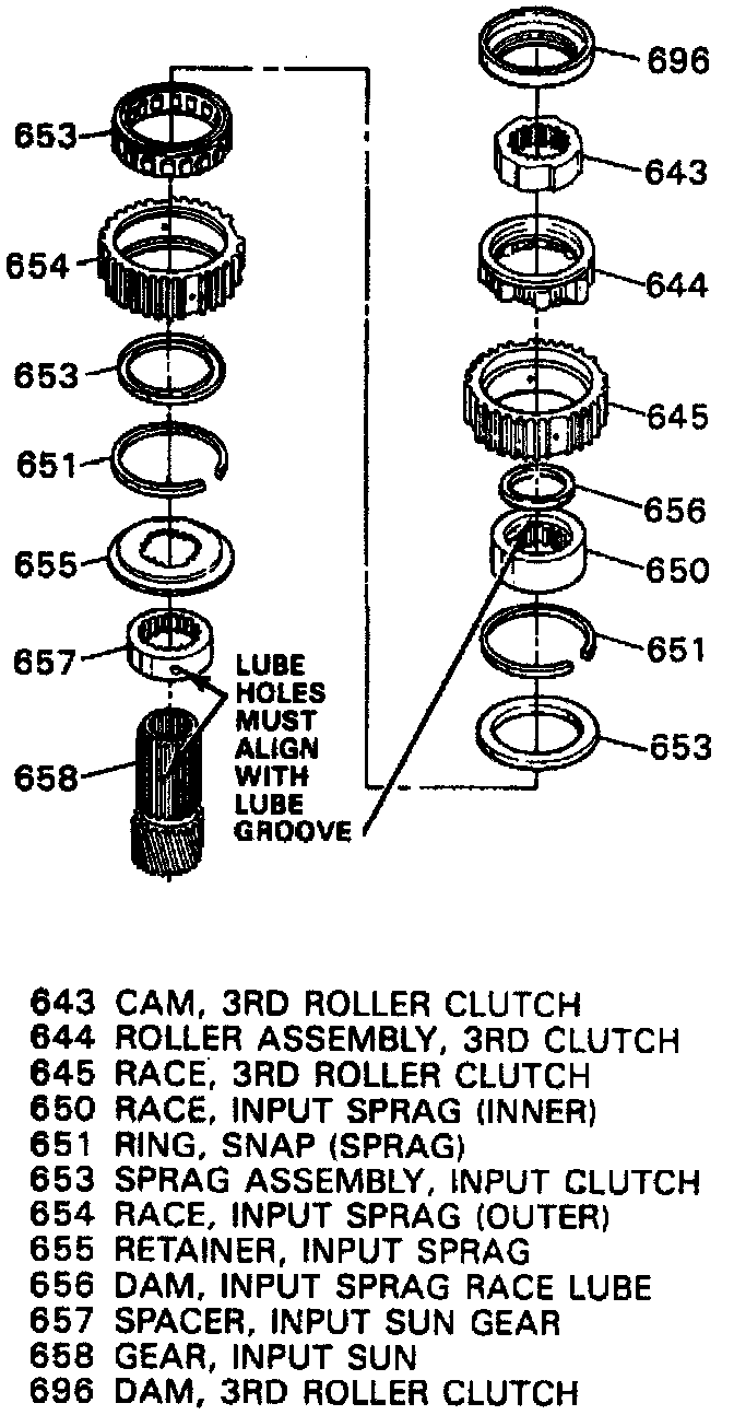 41. Remove 3rd roller clutch and input sprag from input sun gear, then the input sun gear spacer and retainer from sun gear.