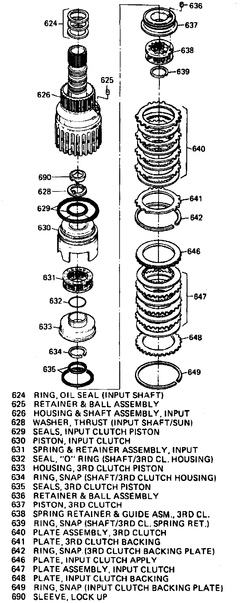 61. Inspect input clutch apply plate, 3rd clutch backing plate, 3rd clutch steel and composition plates, then the thrust washer for damage.