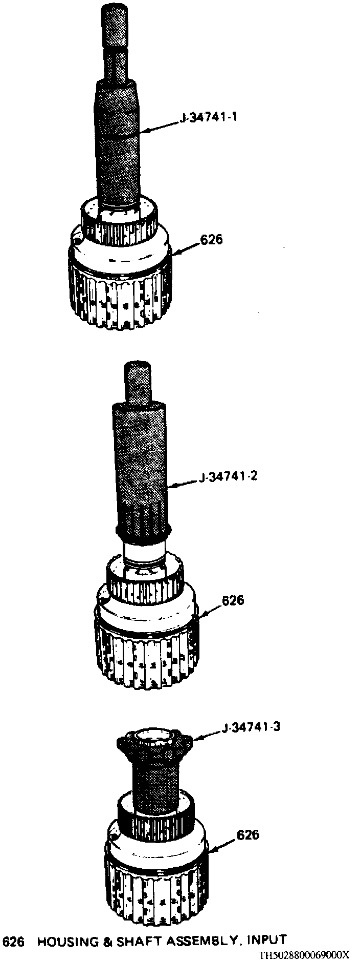 28. Remove indicator, support and adapter, then install output shaft aligning and loading tools J-26958 and J-26958-10 along with adapter J-38385 or equivalents.