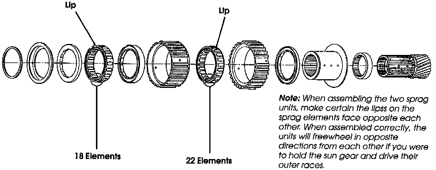 55. Install sprag assembly and roller clutch assembly onto sun gear, then ensure proper operation as shown.