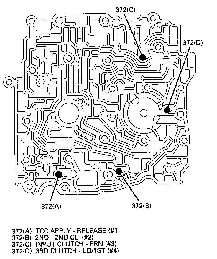 105. Apply approximately 90 psi air pressure to passage 2 to check for proper application of 2nd clutch.