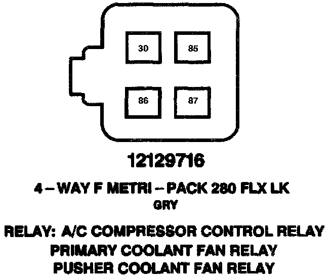 Relay: A/C Compressor Control Relay, Primary, Pusher Coolant Fan Relay:
