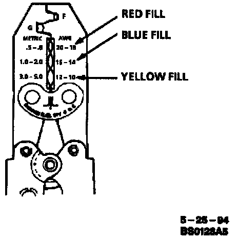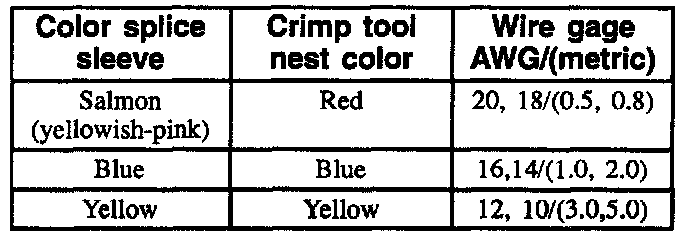 Select the proper splice sleeve according to wire size. The splice sleeves and tool tests are color coded (refer to Chart).