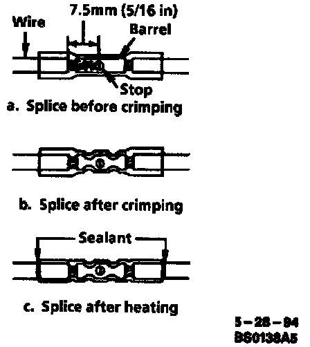 If the harness is taped, remove the tape. To avoid wire insulation damage, use a sewing "seam ripper" to cut open the harness (available from sewing supply stores). The crimp and seal splice sleeves may be used on all types of insulation except Tefzel and coaxial and may only be used to form a one-to-one splice.