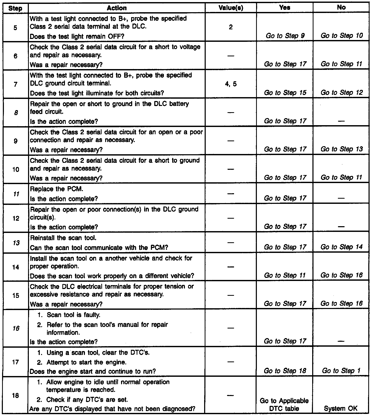 Battery power and ground is supplied for the scan tool through the DLC. The Class 2 serial data circuit to the DLC allows the PCM to communicate with the scan tool. A Universal Asynchronous Receiver Transmitter (UART) serial data line is used to communicate with other modules such as the Electronic Brake Control Module (EBCM), the Supplemental Inflatable Restraint (SIR) system and the Instrument Panel Cluster (IPC).