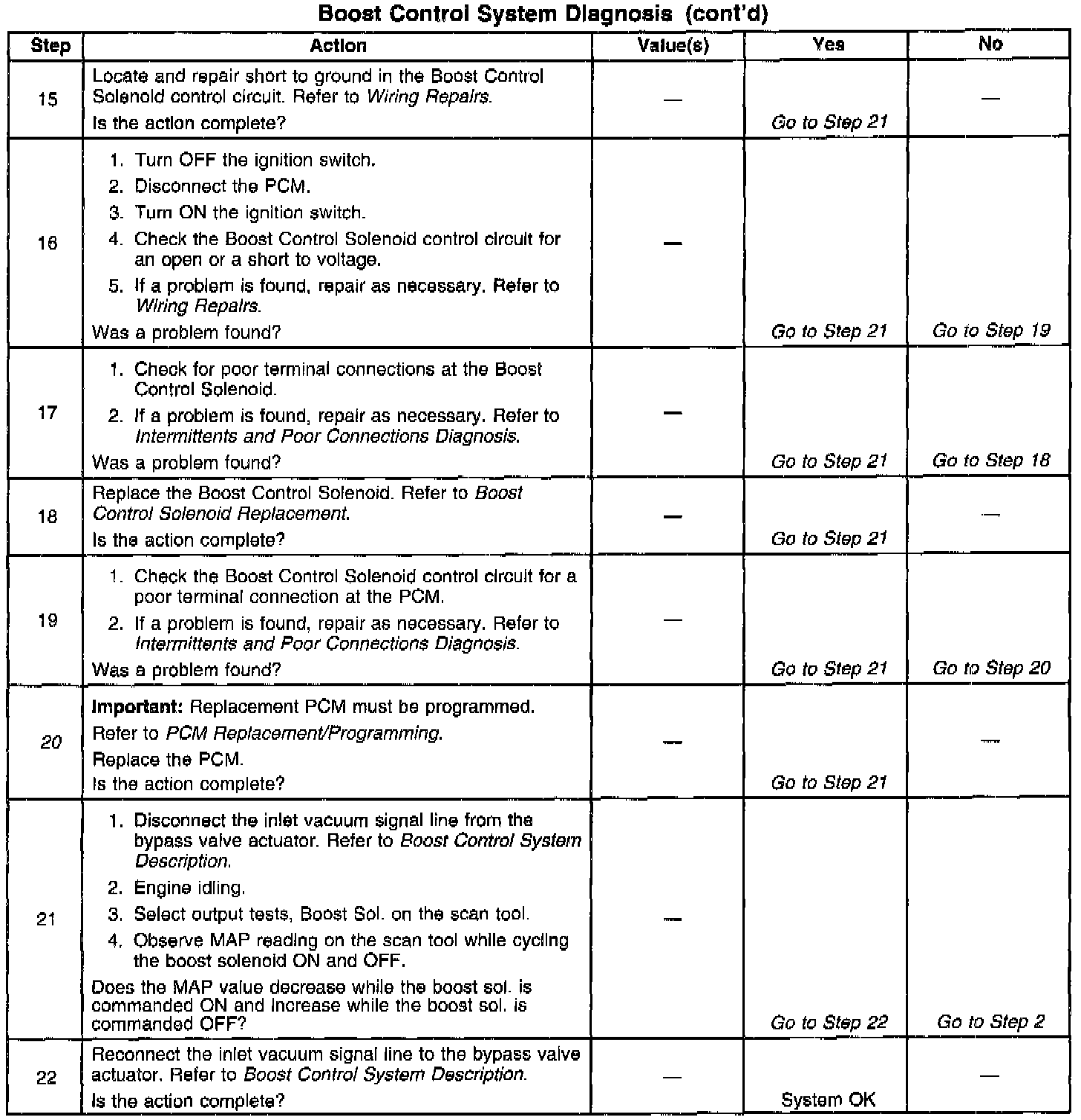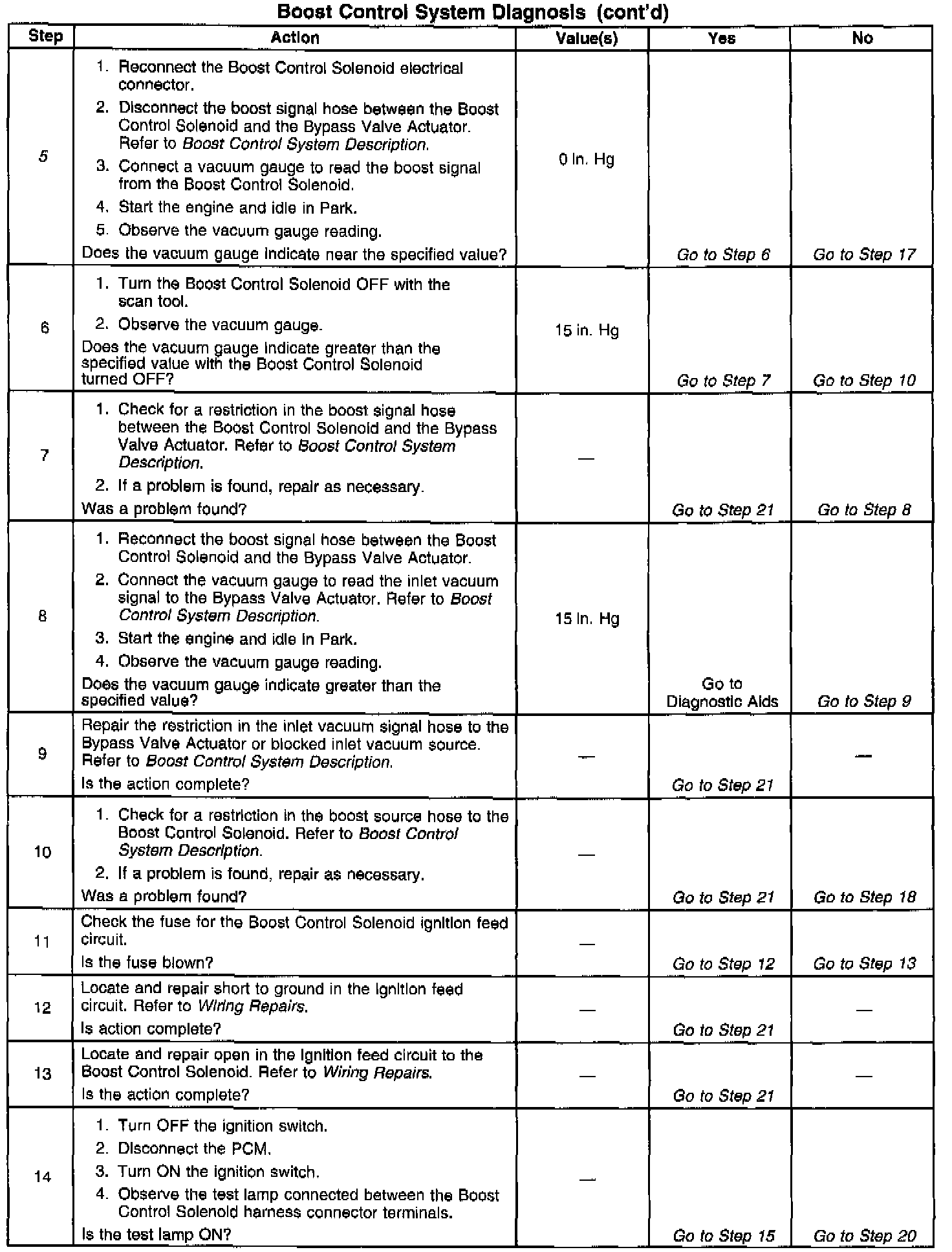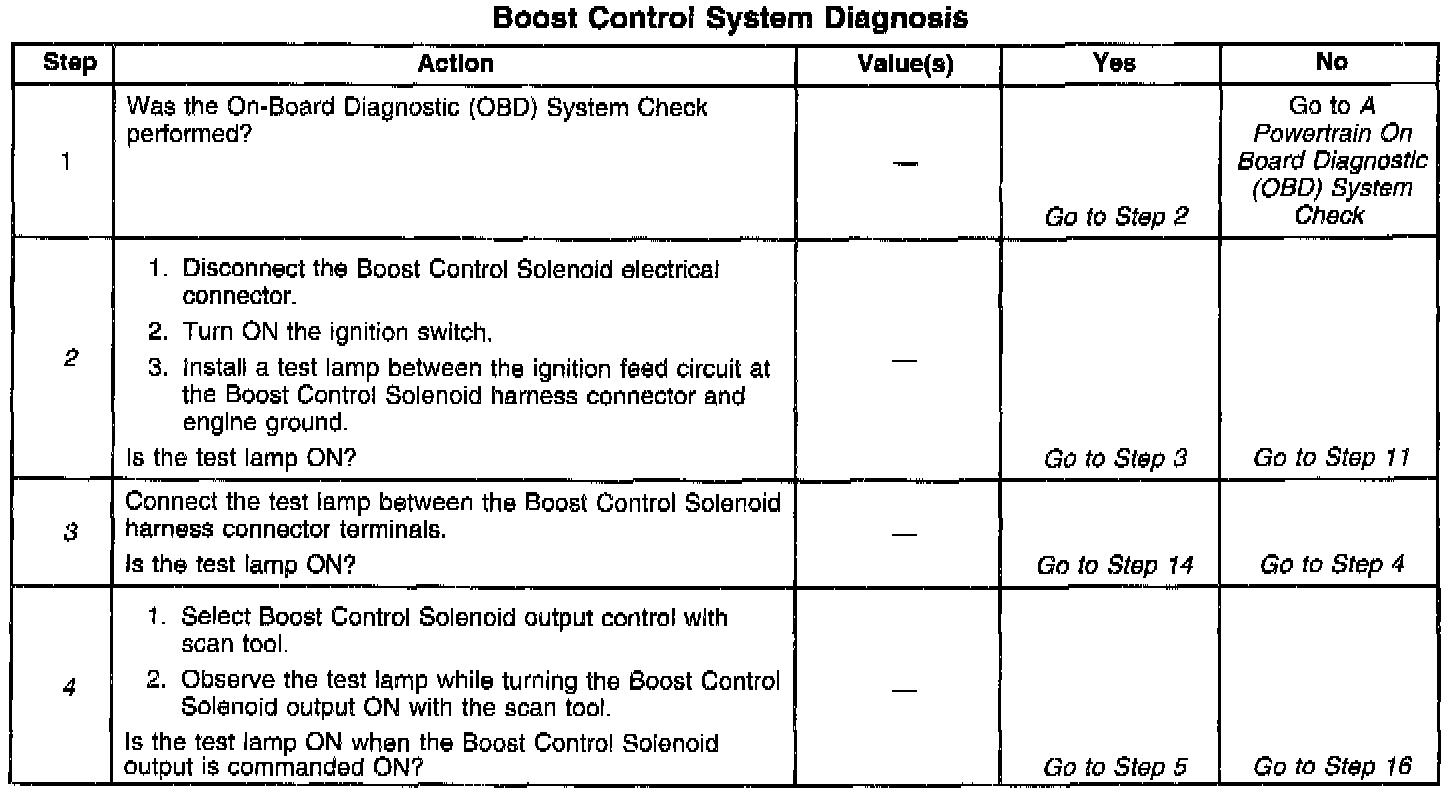 If the Boost Control System Check has been performed and no electrical or vacuum related fault is noted, check for the following conditions: