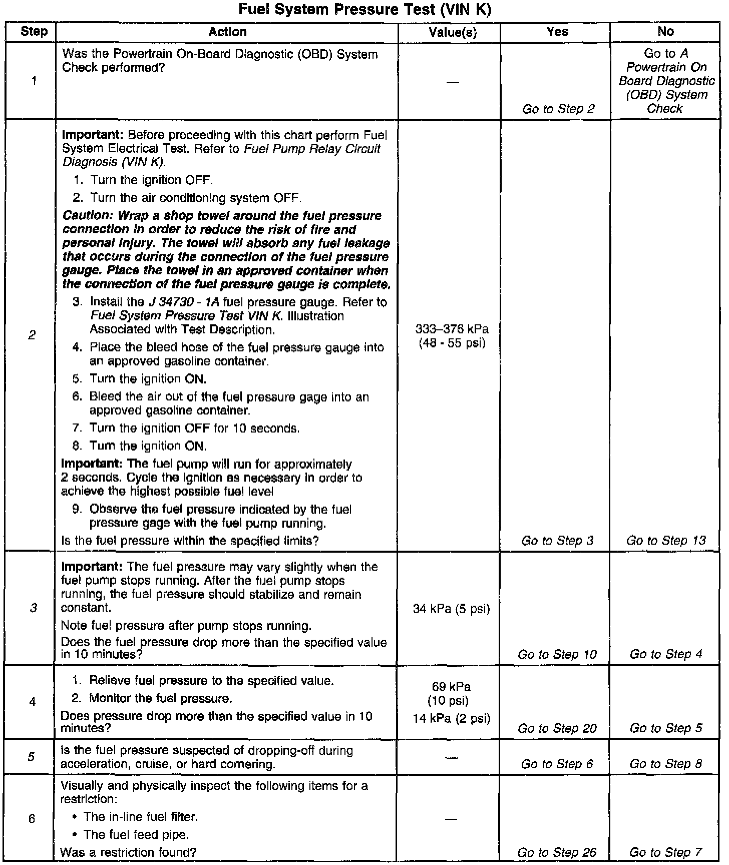 3. A fuel system that drops more than 5 psi in 10 minutes has a leak in one or more of the following areas: