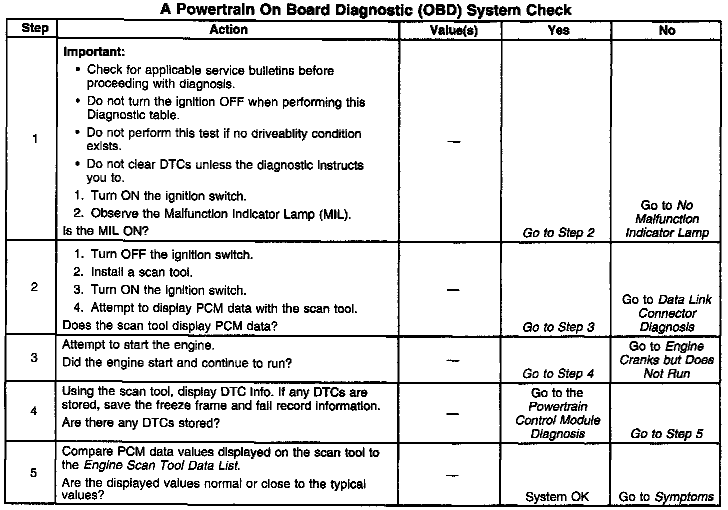 The number(s) below refer to the Step number(s) on the Diagnostic Table.