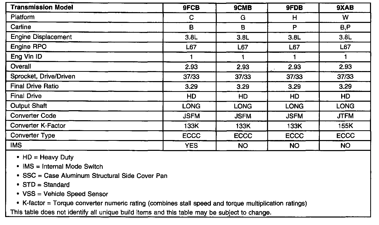 Model Build Information (RPO MN7)
