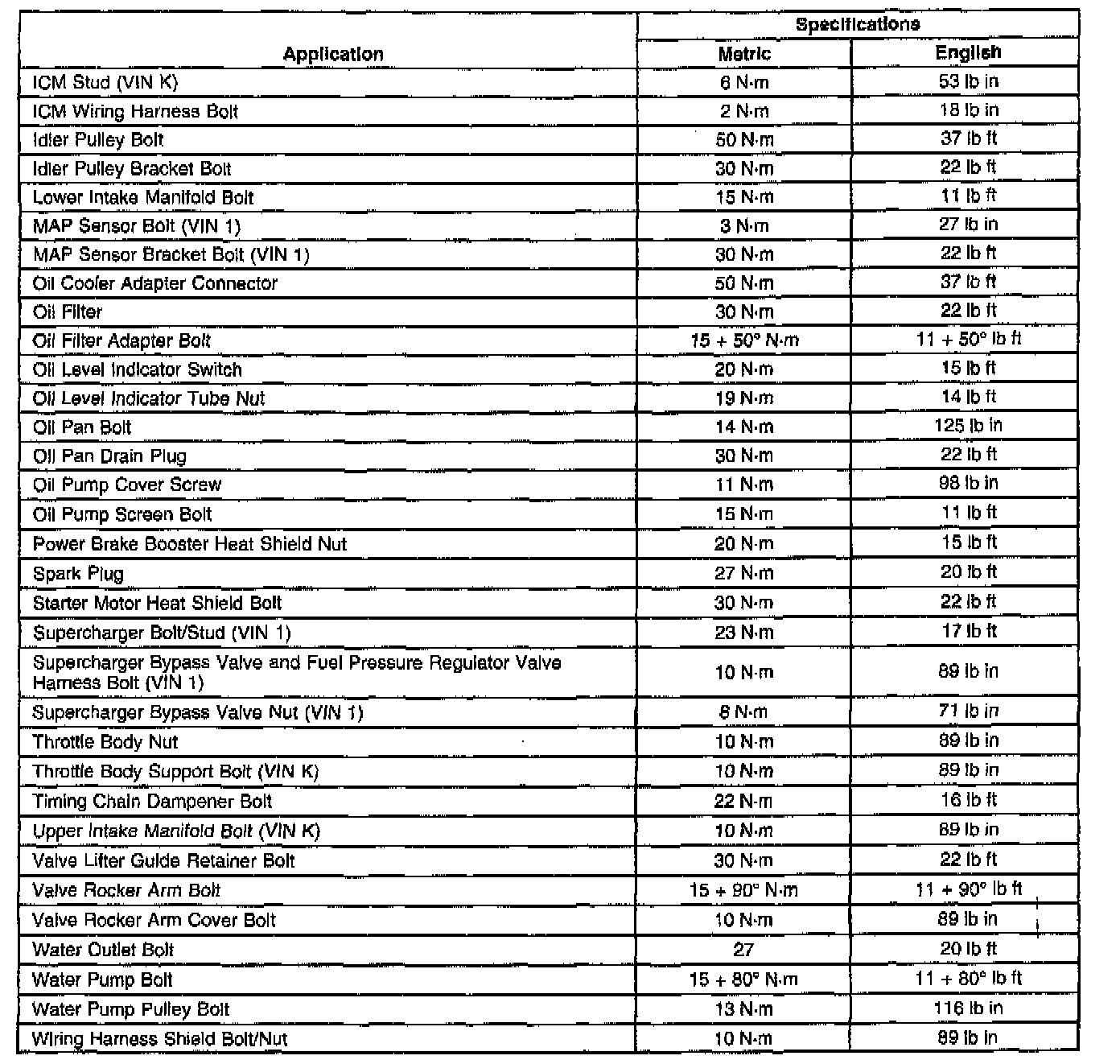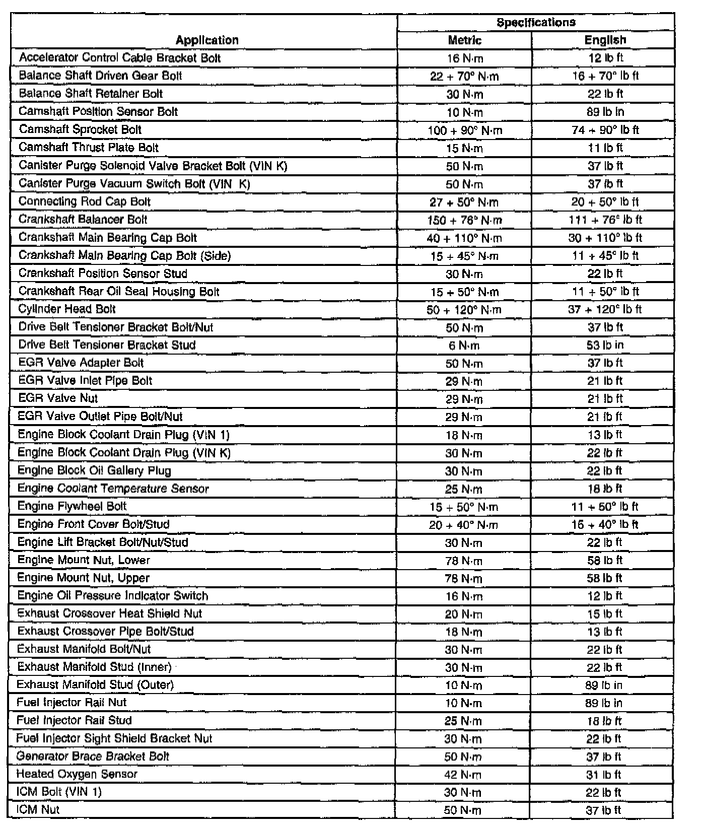 Fastener Tightening Specifications