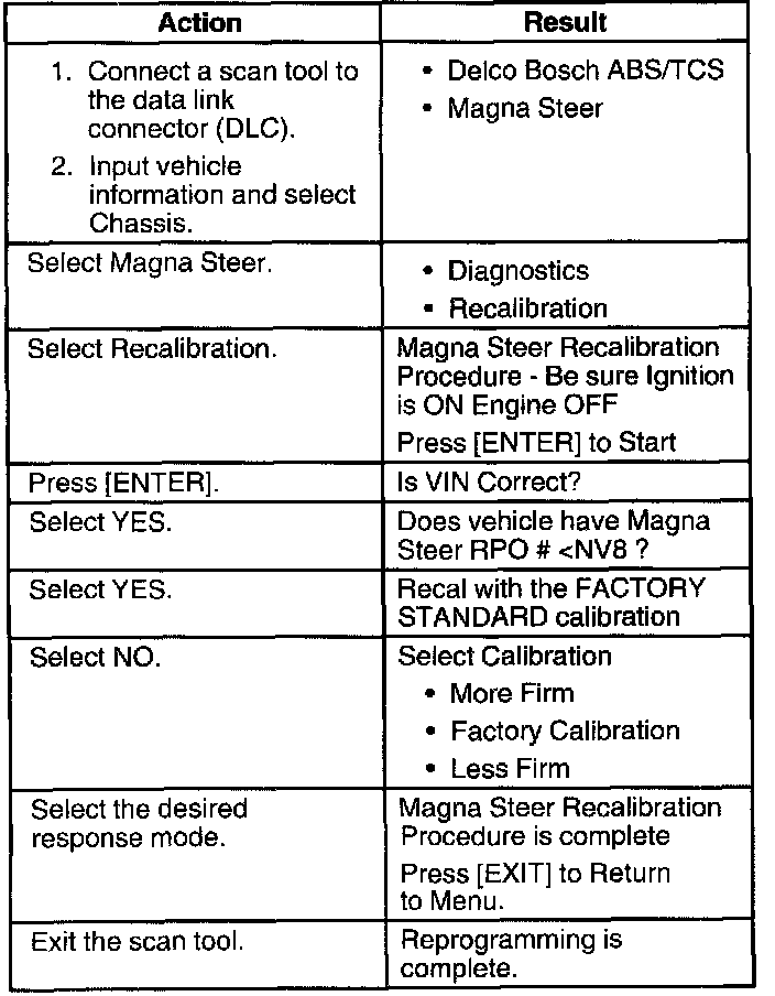 The variable power steering system has 3 response modes. Use a scan tool and the following table in order to select the Variable Power Steering response mode per customer request.
