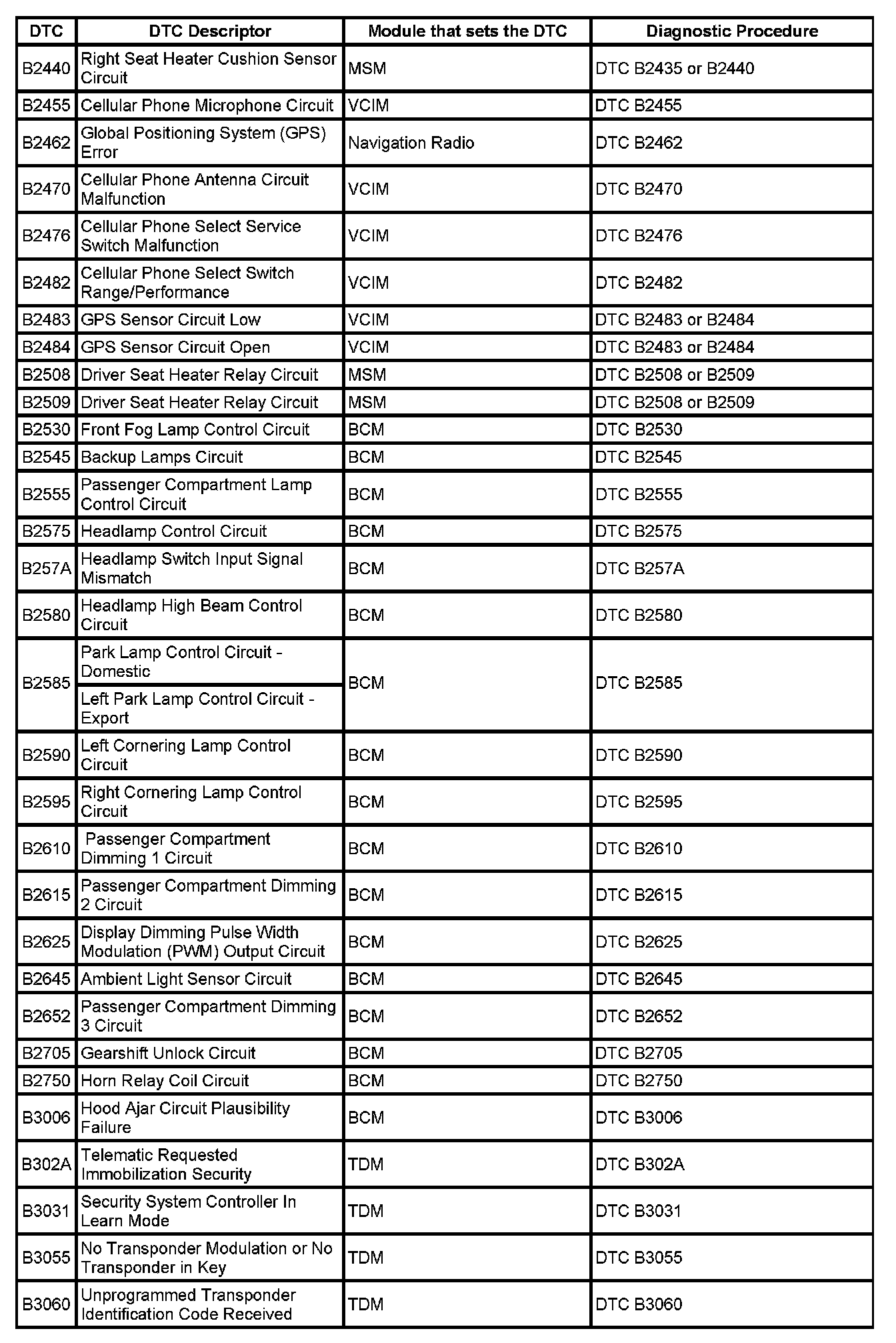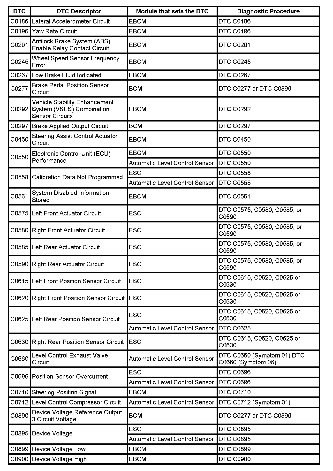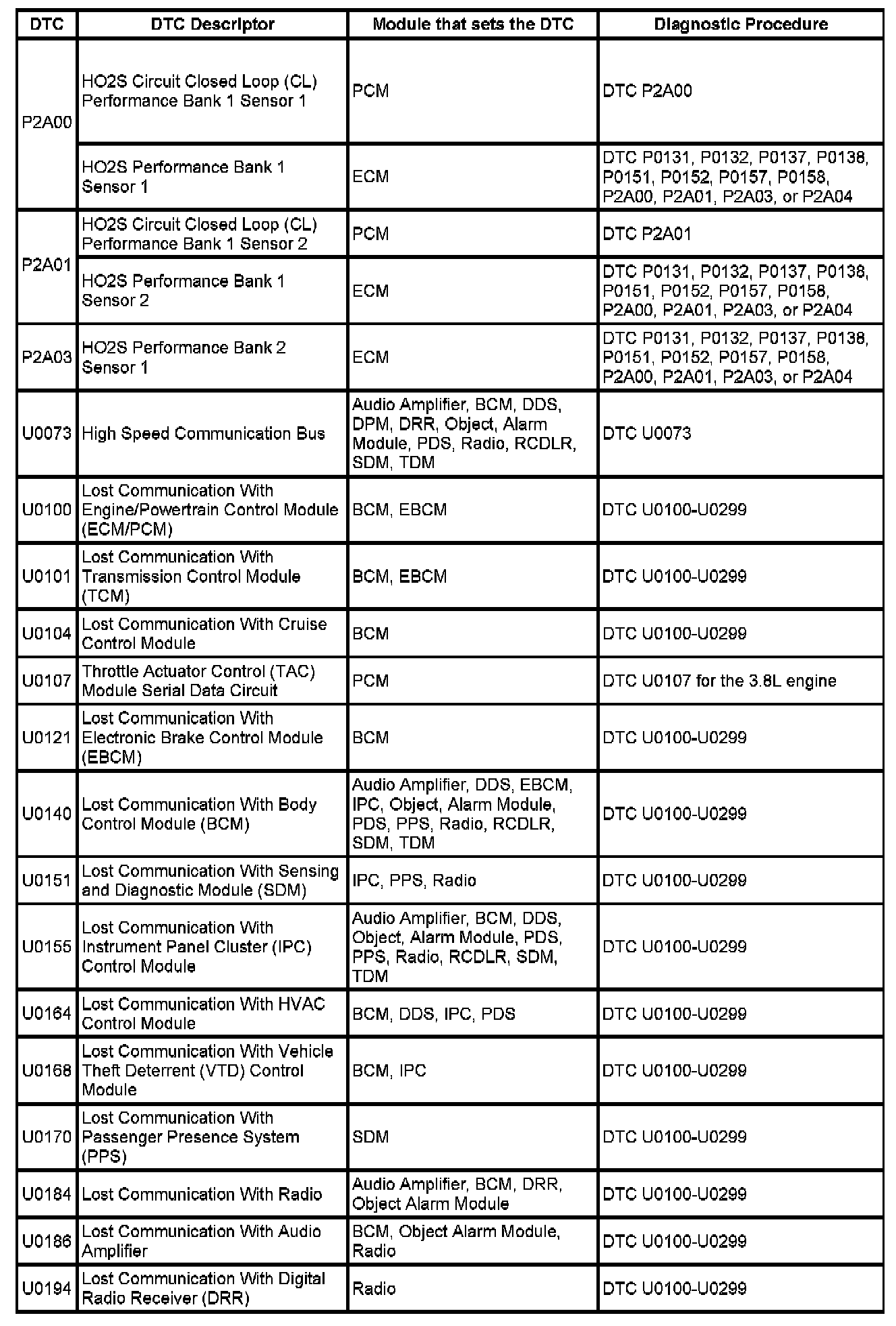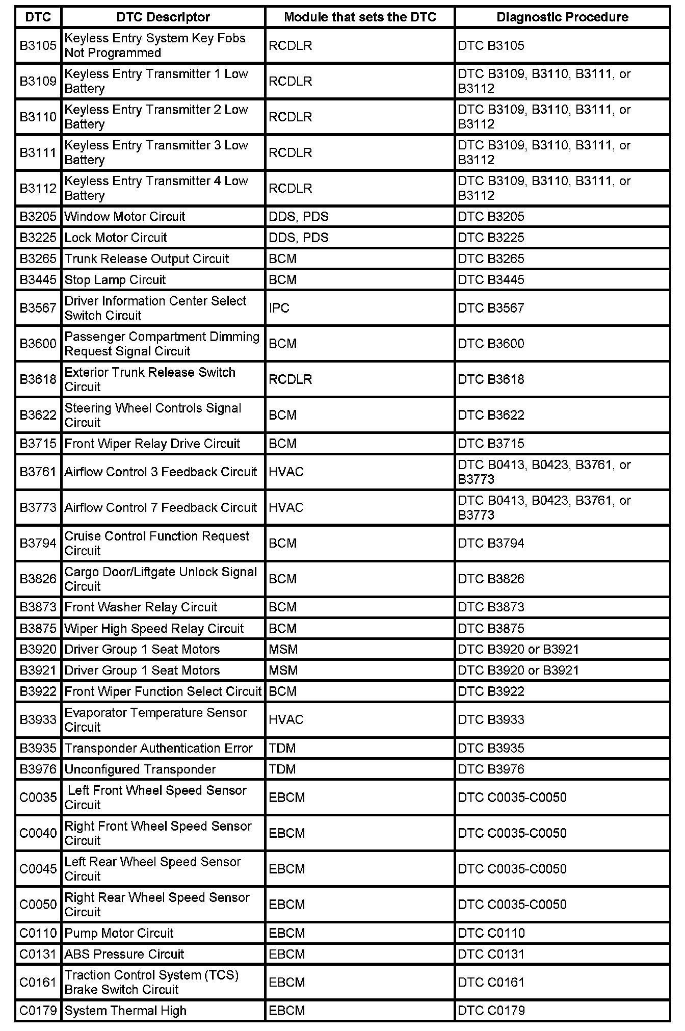 This master DTC list includes all applicable DTCs in alphanumeric order with descriptors.