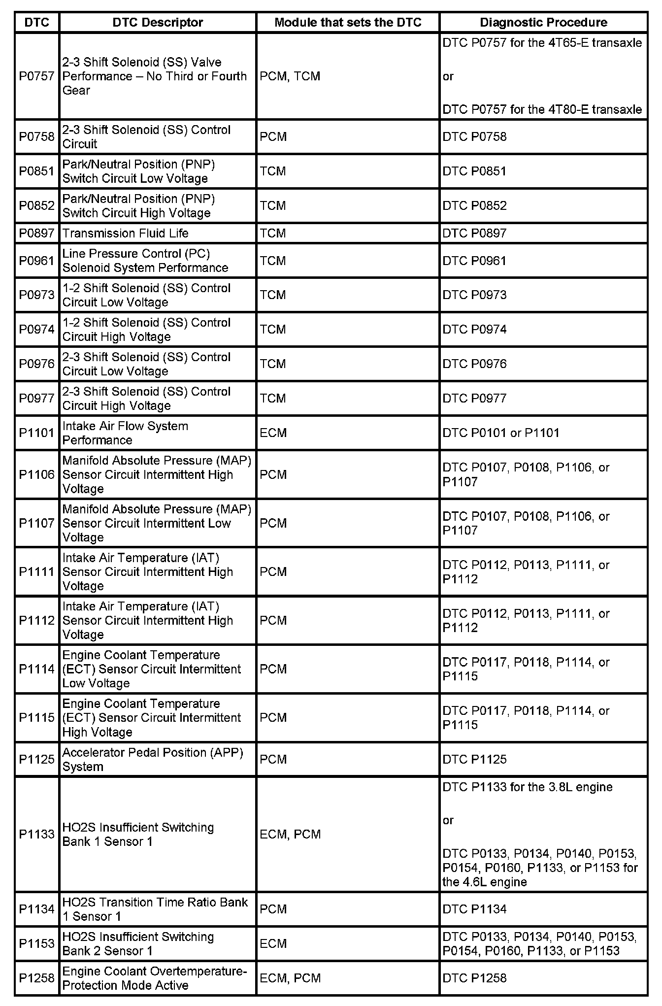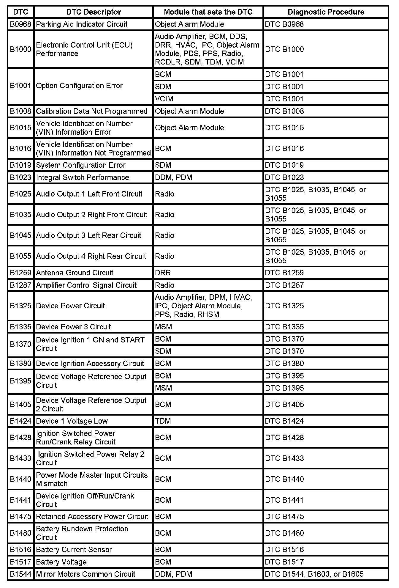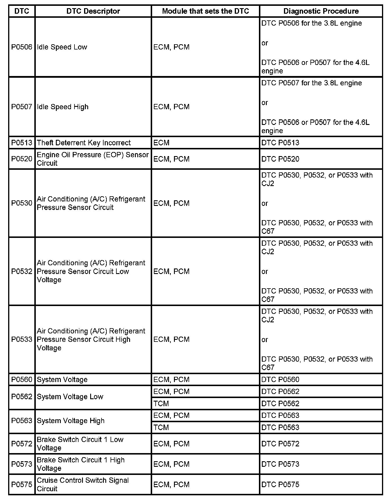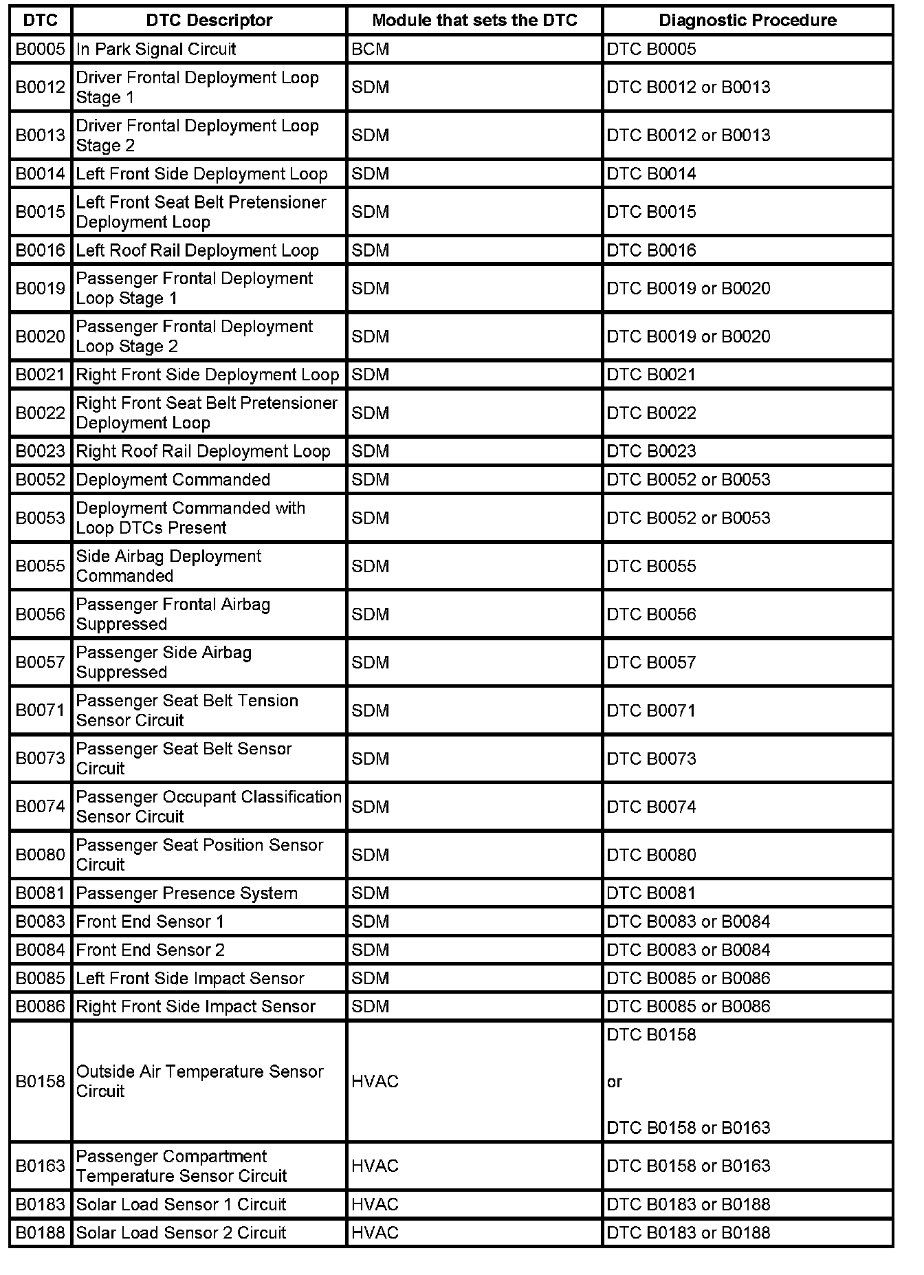 This master DTC list includes all applicable DTCs in alphanumeric order with descriptors.