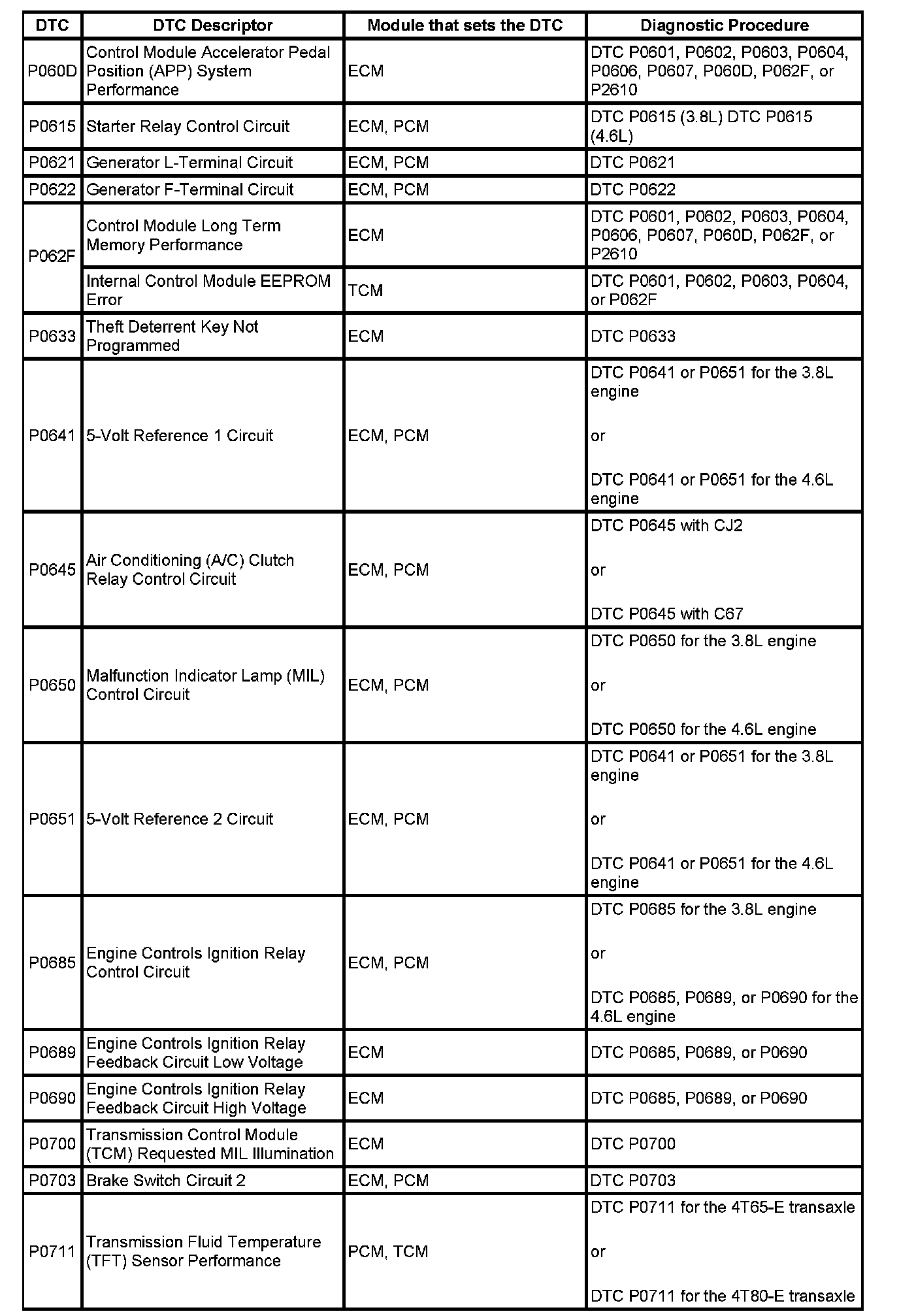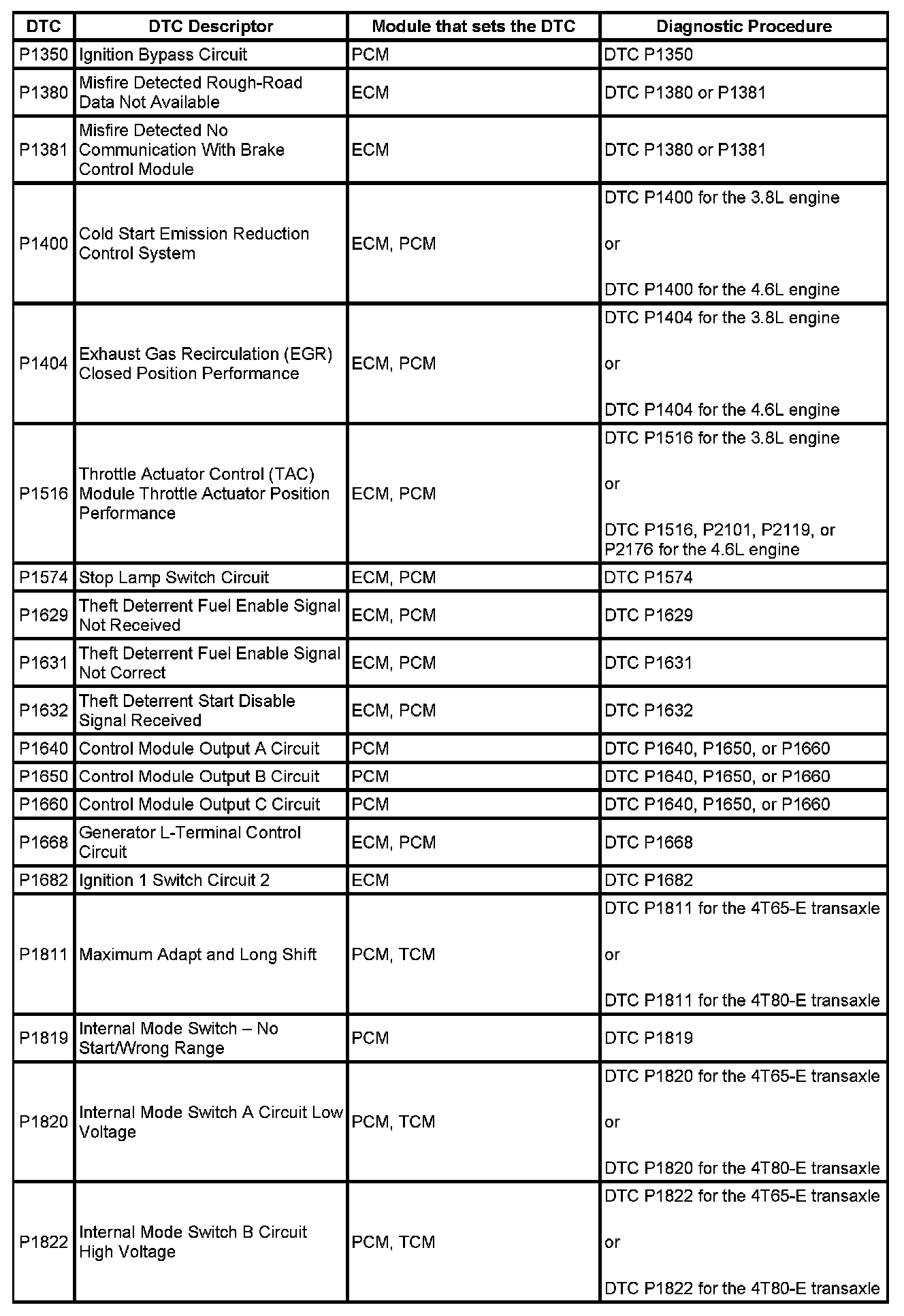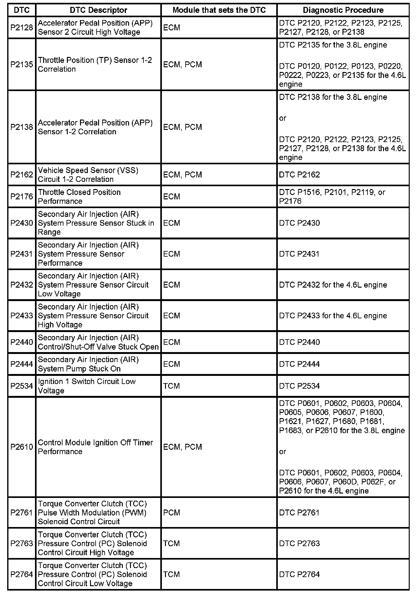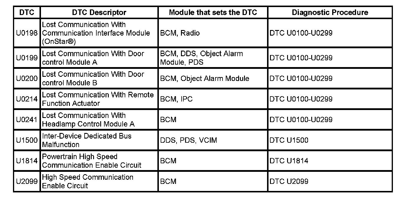 This master DTC list includes all applicable DTCs in alphanumeric order with descriptors.
