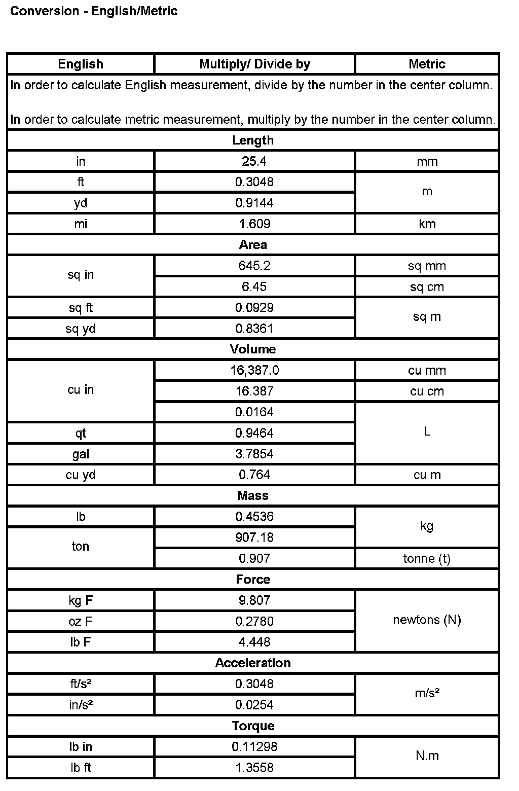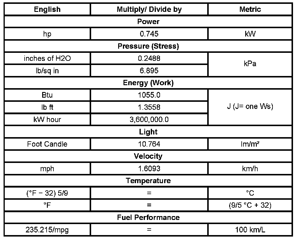 Conversion - English/Metric