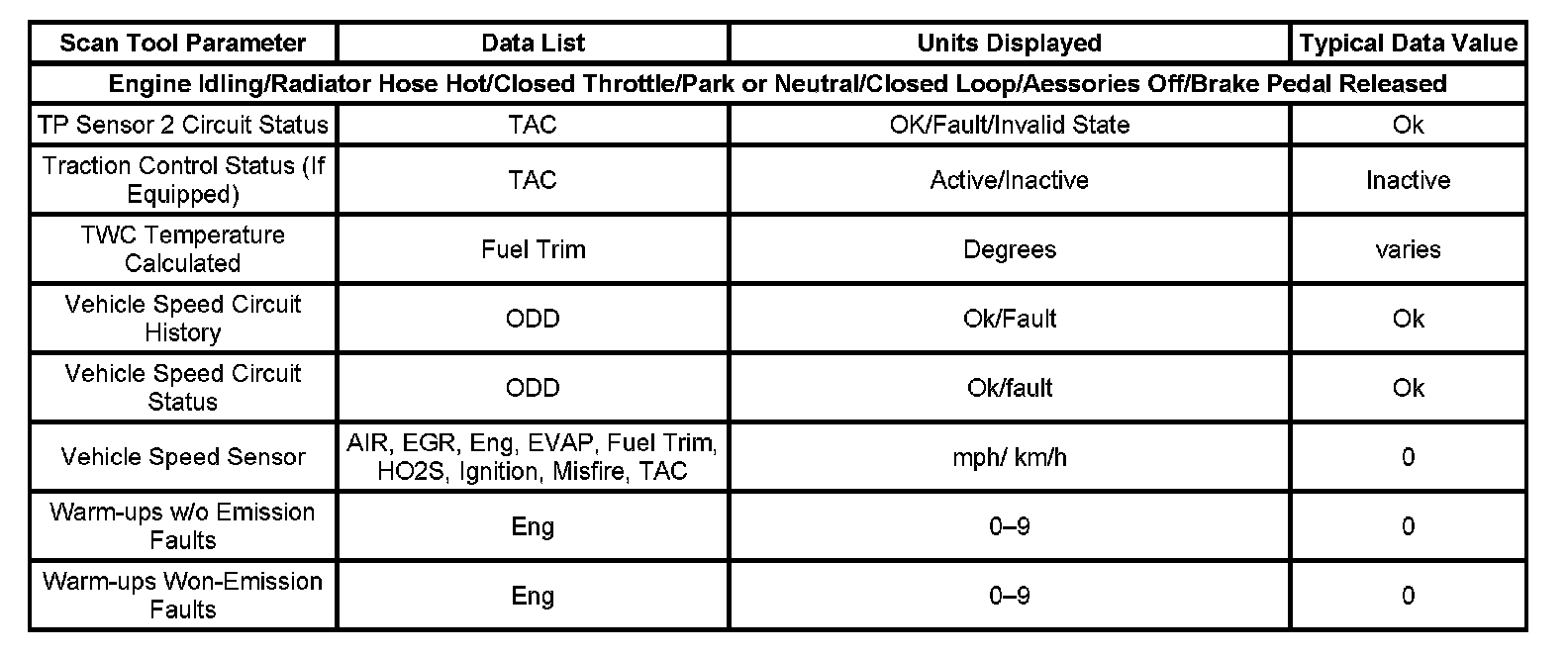 Only the parameters listed below are referenced in this service data for use in diagnosis. If all values are within the typical range described below, refer to Symptoms - Computers and Control Systems for diagnosis. - Symptoms - Engine Controls