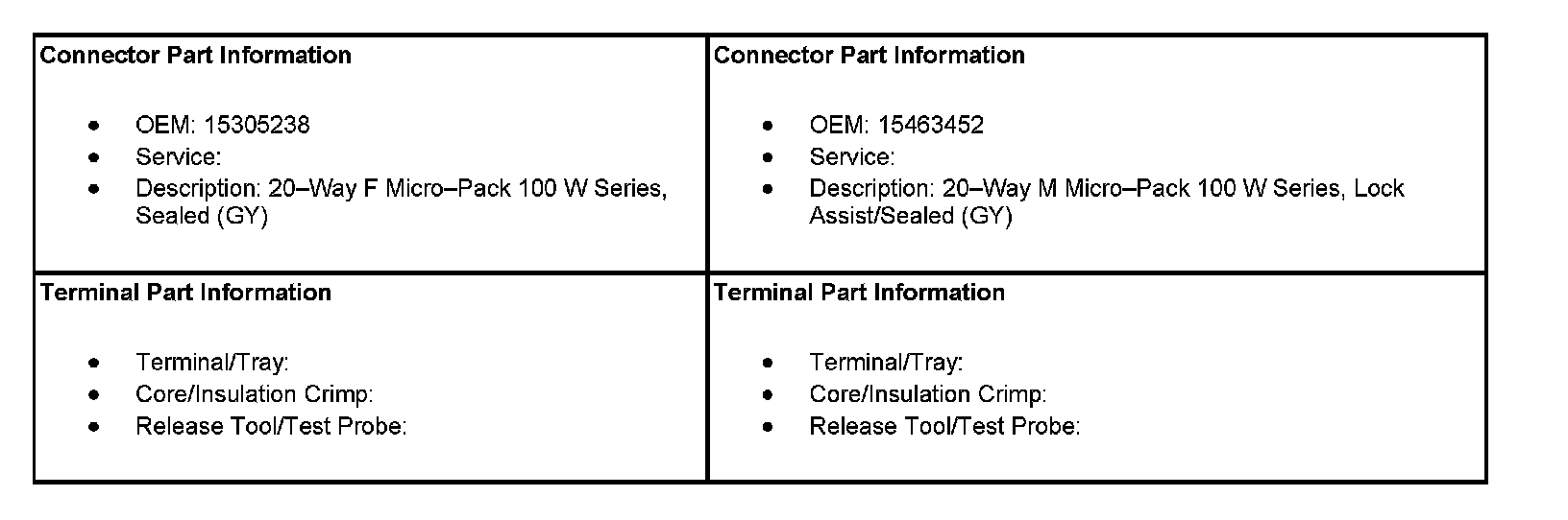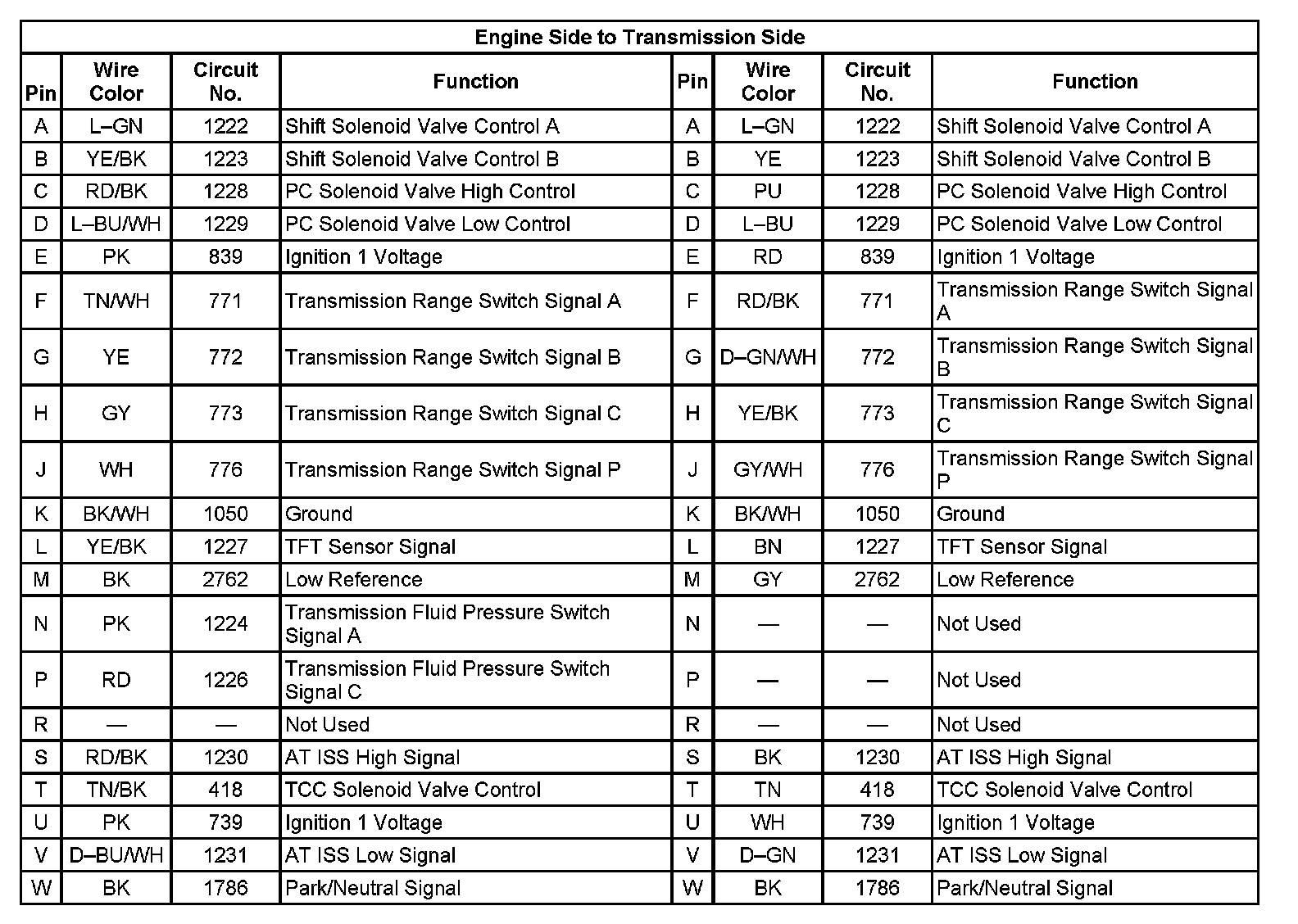 Automatic Transmission Inline 20-Way Connector End ViewEngine Side to Transmission SideEngine Side to Transmission Side: