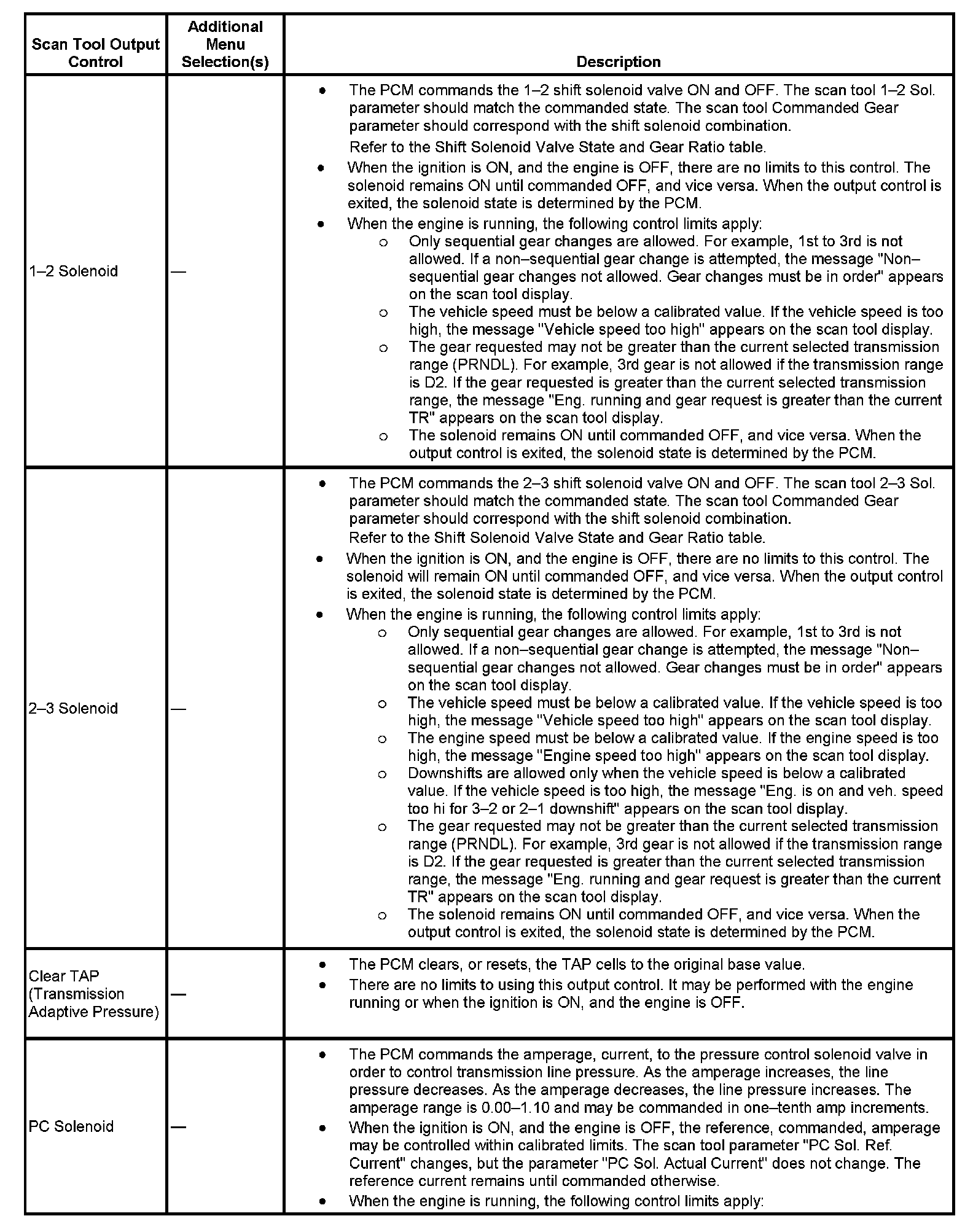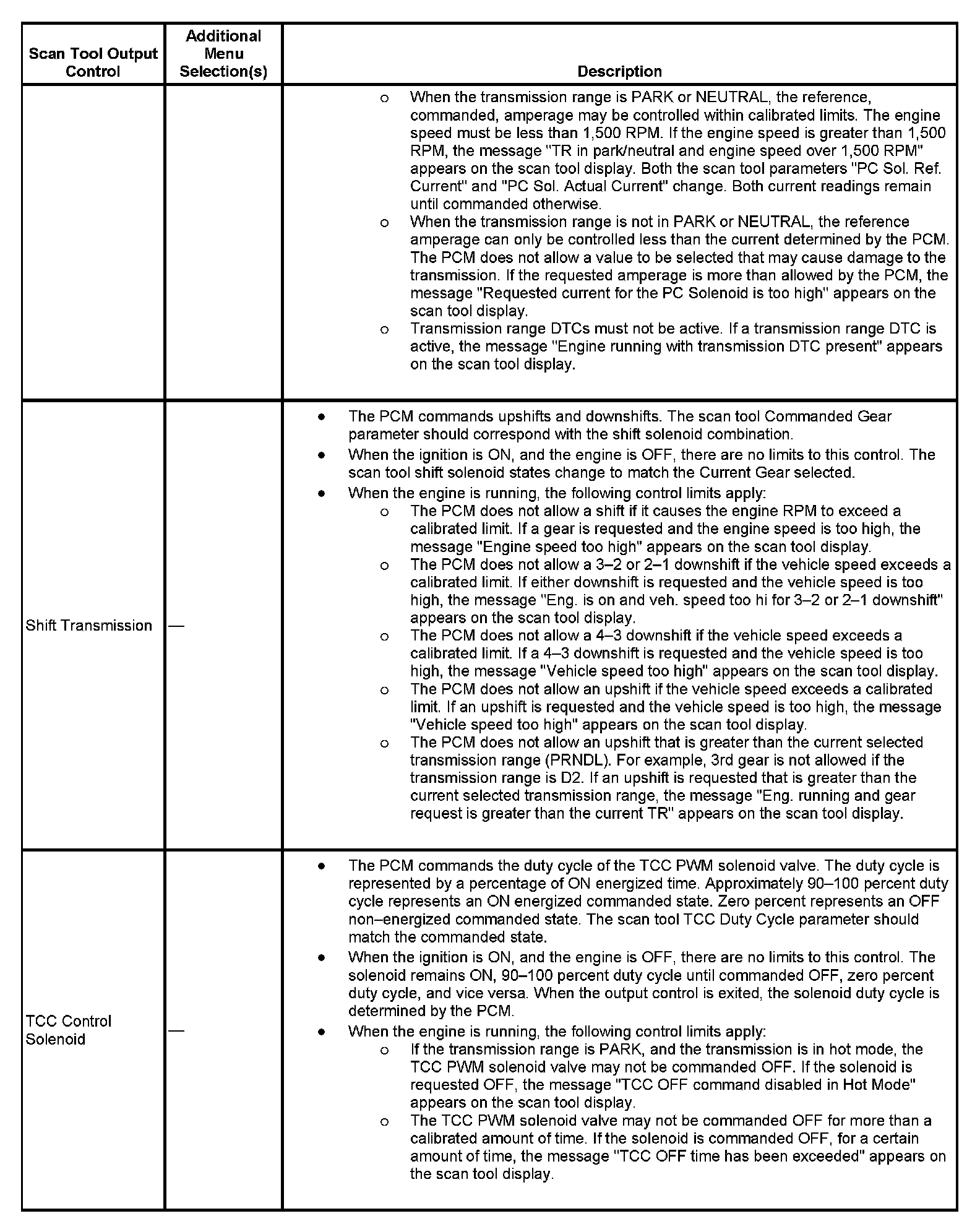 Scan Tool Output Controls