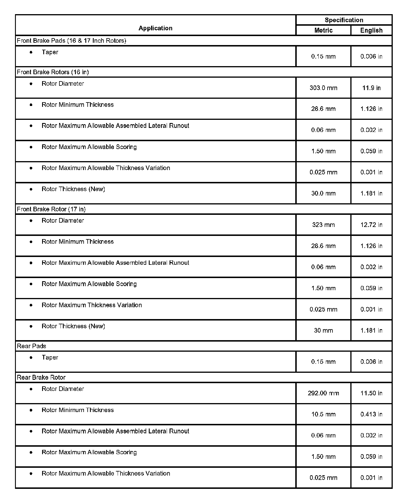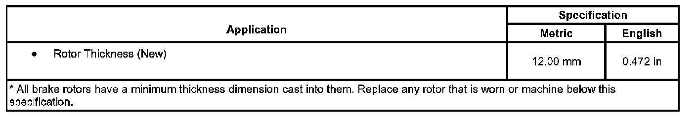 Disc Brake Component Specifications