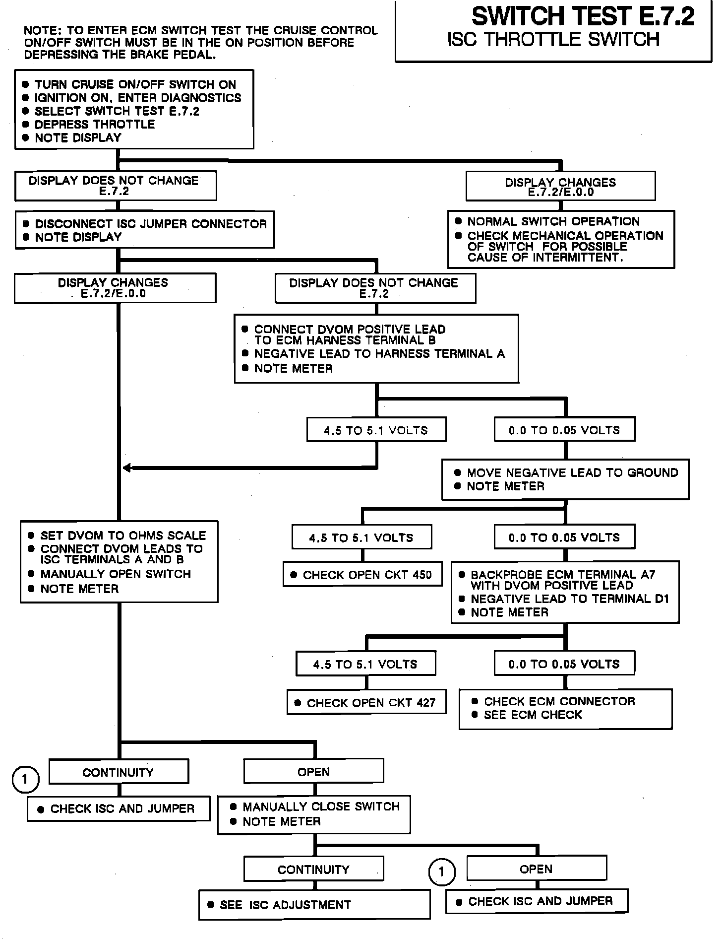 This test detects the open and close of the nose switch of the Idle Speed Control (ISC) at terminal A7 of the PCM/ECM.