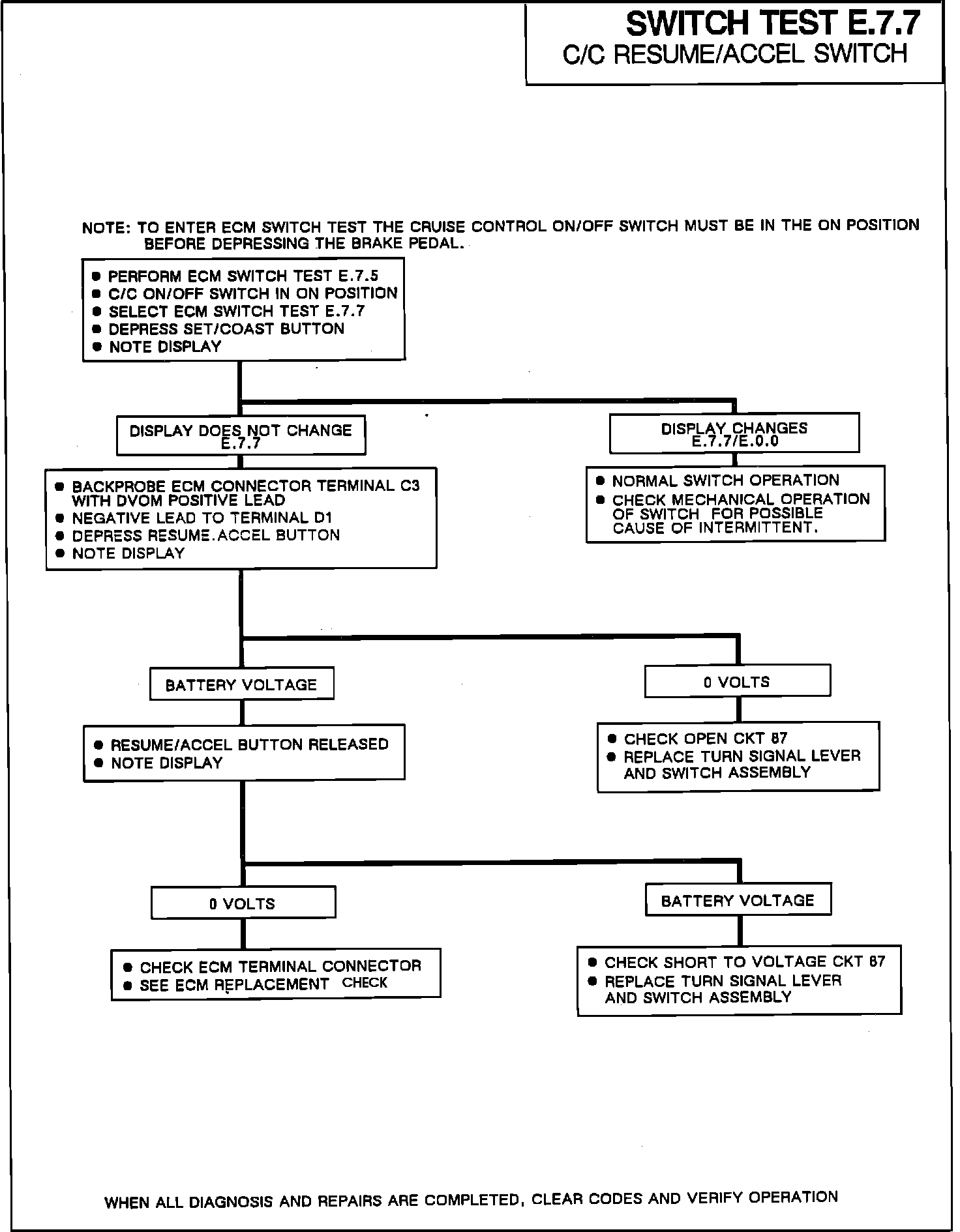 NOTE: The cruise switch must be on to perform this test. Switch test E.7.5 should be performed before this test to ensure power to the resume-accel switch.