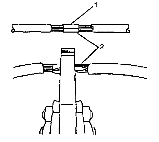 ^ Ensure that each splice is at least 40 mm (1.5 in) away from other splices, harness branches and connectors. This helps prevent moisture from bridging adjacent splices and causing damage.